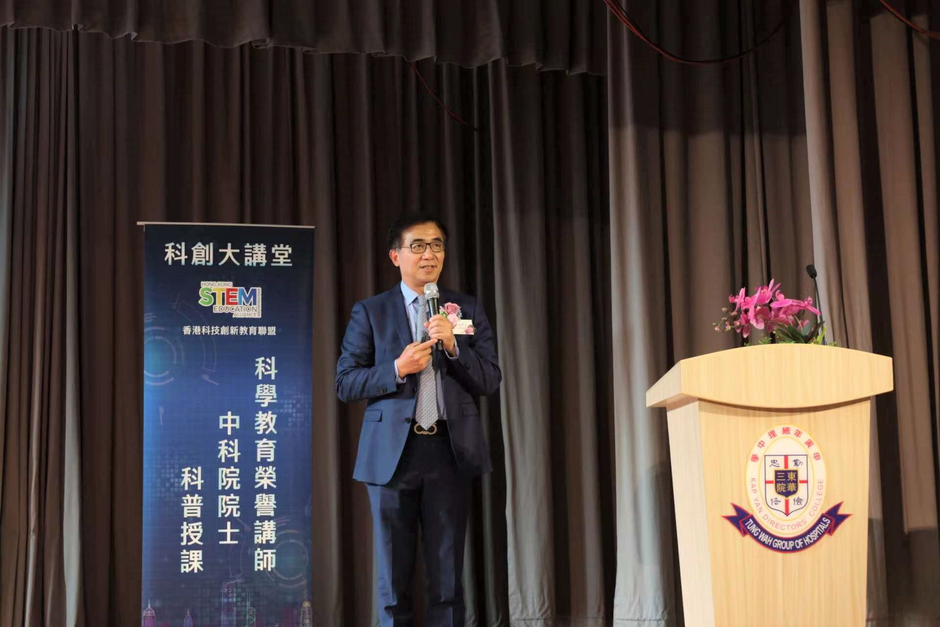 香港创新科技教育联盟常务委员会主席张泽松博士、东华三院主席马清扬先生、东华三院行政总监苏祐安先生、东华三院甲寅年总理中学校监谭镇国先生等出席讲座。