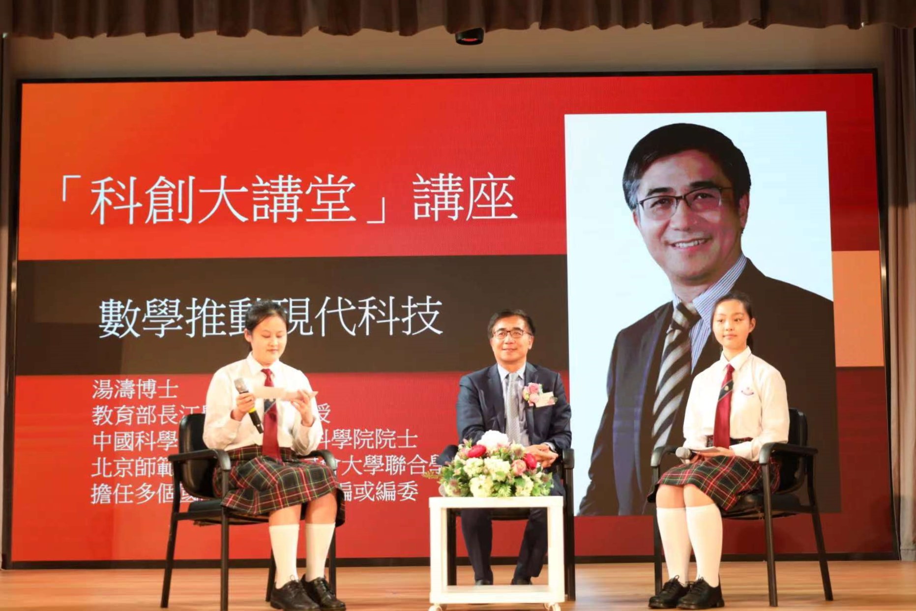 “科创大讲堂”于2019年开办,致力于建立国内科学家与香港学校的联系平台,通过邀请国内顶尖科学家为香港学生提供科普讲座,激发香港学生对科学技术的兴趣,树立科学梦想。2022年“科创大讲堂”邀请24名中科院院士担任香港学校“科学教育荣誉讲师”,汤涛院士受邀与东华三院甲寅年总理中学结对,为该校推动科创教育提供建议和指导。