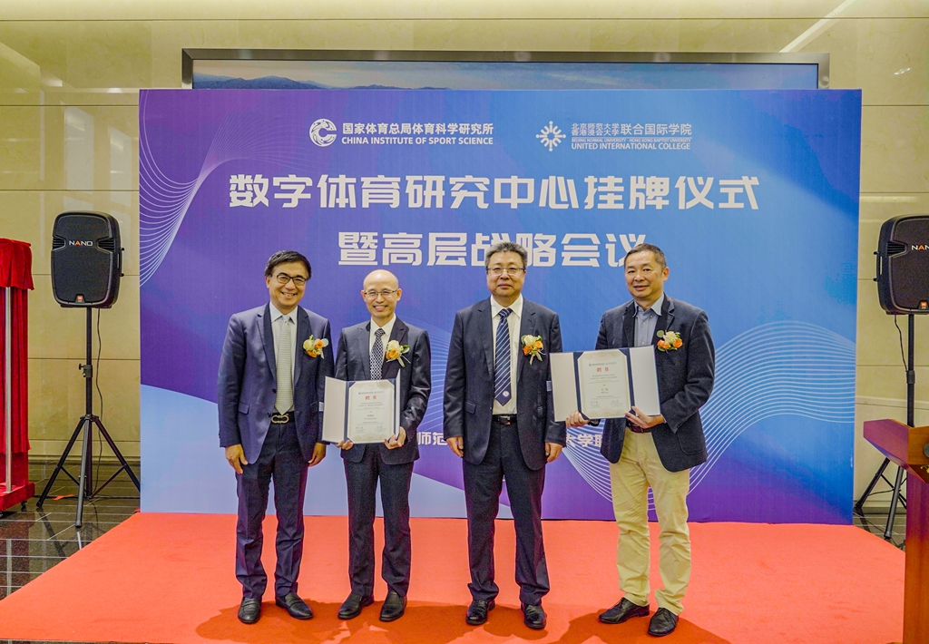 2023年3月28日,由国家体育总局体育科学研究所和北师港浸大(UIC)共同设立的数字体育研究中心揭牌,双方将积极推进主动健康和数字体育的理论研究和技术创新。香山科学会议预备会也于当日举行,多所高校、机构的专家学者汇聚UIC,共探主动健康的理论、方法与技术。