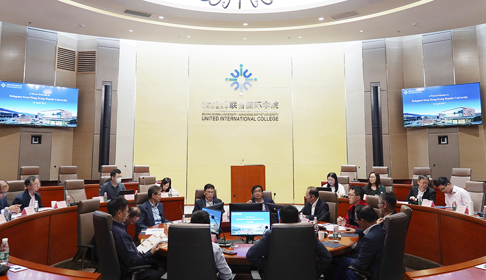 2023年4月14日,香港浸会大学暂任常务副校长及署理副校长(研究及拓展)黄伟国教授、协理副校长(研究发展)及理学院院长刘际明教授一行到访北师港浸大(UIC),与我校理工科技学院(FST)就进一步深入合作方面进行座谈交流。