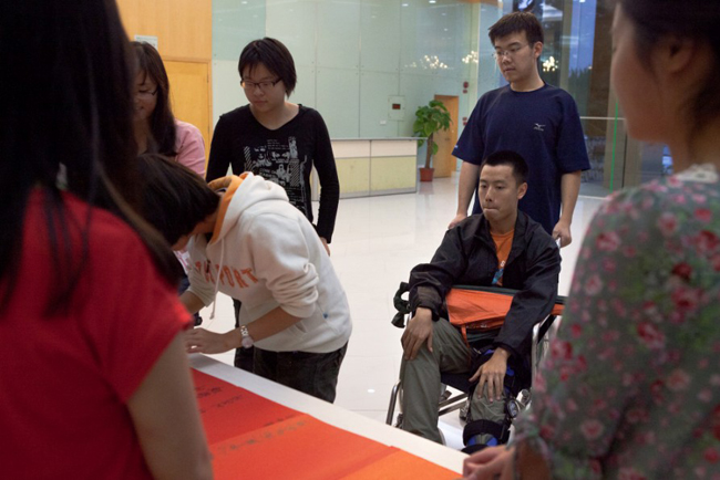 讲座结束后,与会的师生一齐为郭教授送上一份签名纪念册,表达对他真诚的感激与深深的敬意。