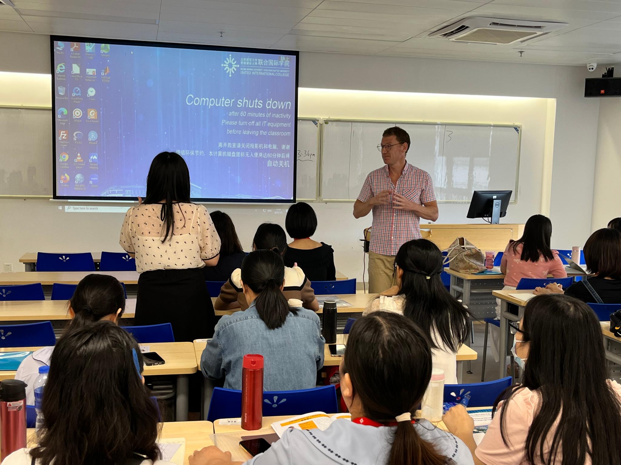 本次活动由UIC教育基金会资助、通识教育学院承办。来自梅江区不同学校的38位中小学英语教师将在UIC参加为期12天的英语教学能力提升培训。UIC通识教育学院英语语言中心将带来“国际化+本土化”相结合的培训课程,从教学理念、教学方法、教学研究、教学成果等多方面,将国际标准与本土教学需求进行比较与融合,助力中小学英语教师改进教学方式、提升教学能力,旨在逐步培养一支具备国际视野、服务本土教学的高素质英语教师队伍。