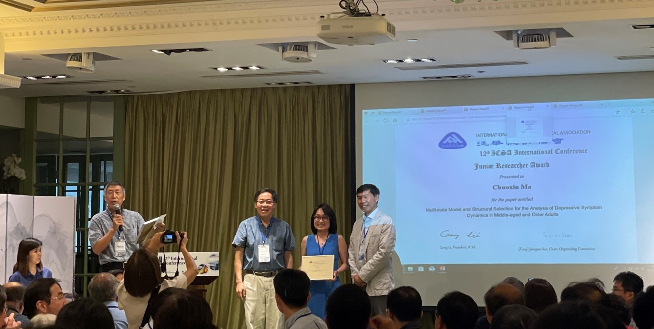 泛华统计协会(ICSA)2023年度国际会议于7月7日至9日在中国香港举办。在会议上,北师港浸大(UIC)理工科技学院统计与数据科学系副教授马绰欣博士荣获青年研究者奖(Junior Researcher Award),获奖论文为Multi-state model and structural selection for the analysis of depressive symptom dynamics in middle-aged and older adults。据悉,此奖项面向全世界博士毕业不超过五年的青年学者征集参评论文,每年仅有不超过五位获奖者。