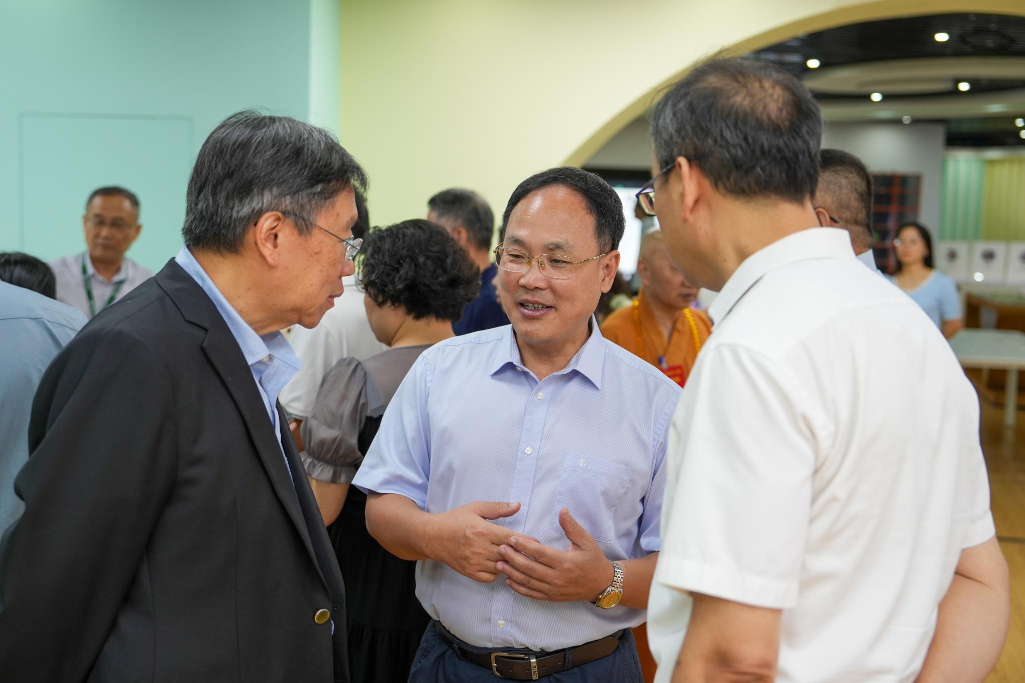 常务副校长周荫强教授(左)与来宾交流