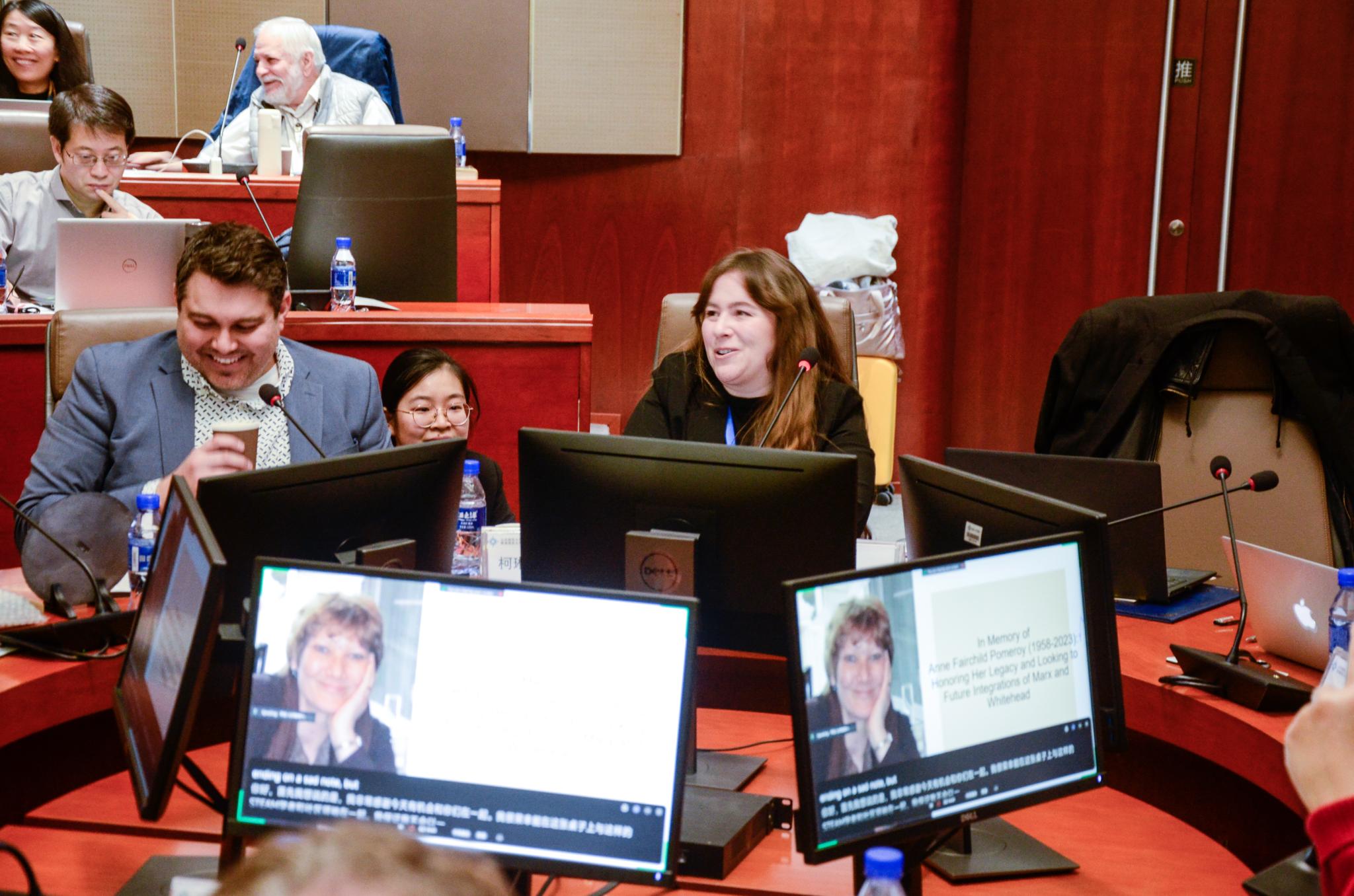 美国加州州立大学北岭分校柯琳·胡梅尔(Corinne Hummel)博士以“论马克思与怀特海的深度契合”为题发言,认为美国教授波默罗伊撰写的《马克思与怀特海》是探讨马克思与怀特海思想深度契合的英文著作,深刻地影响了她,因此她现在也在研究这一课题。