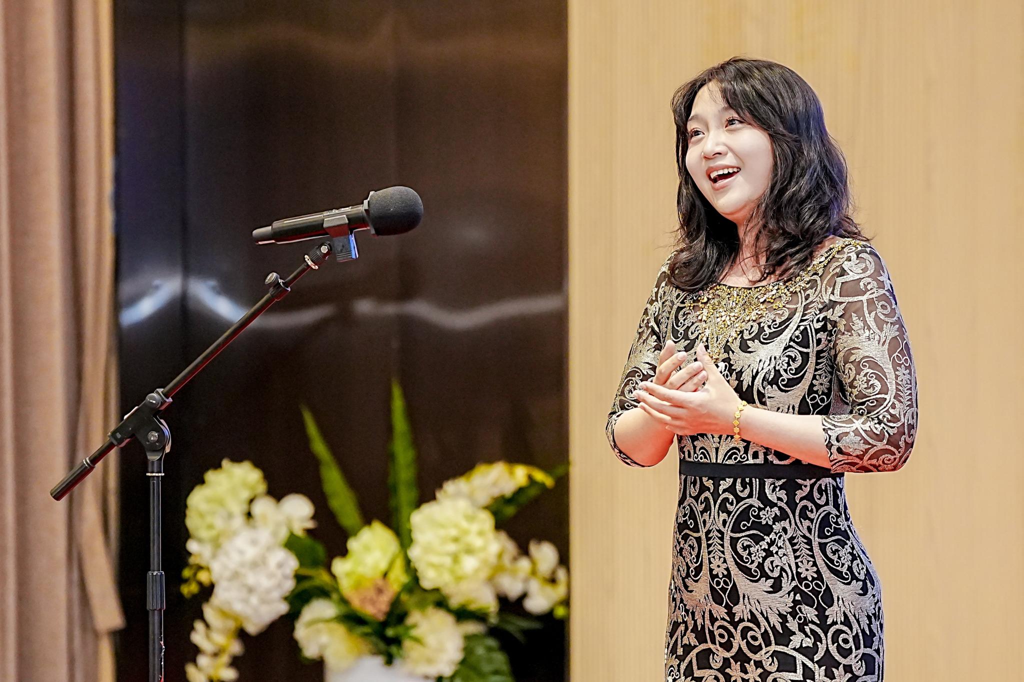 珠海市欧美同学会副会长易茗在高桌晚宴上演唱