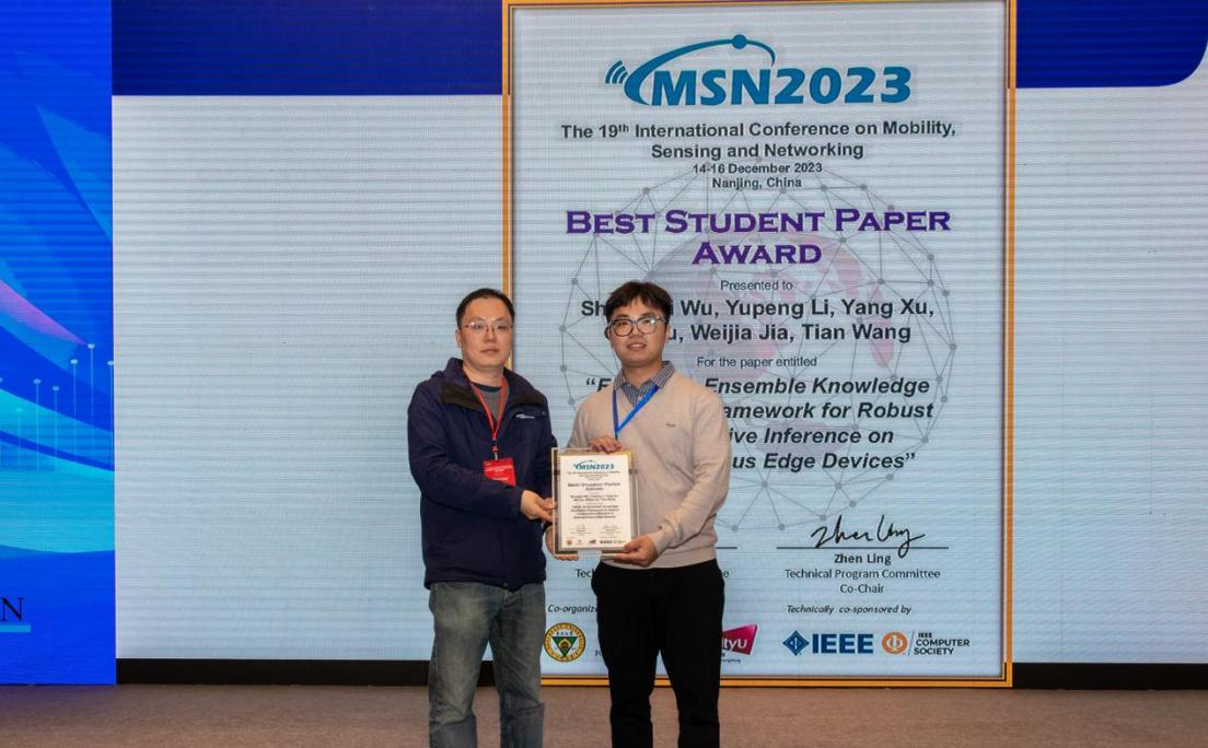 第十九届移动、传感与网络国际会议(MSN 2023)圆满落幕,2022级计算机科学系博士研究生吴尚睿团队的论文荣获最佳学生论文奖,指导老师为计算机科学系王田教授。