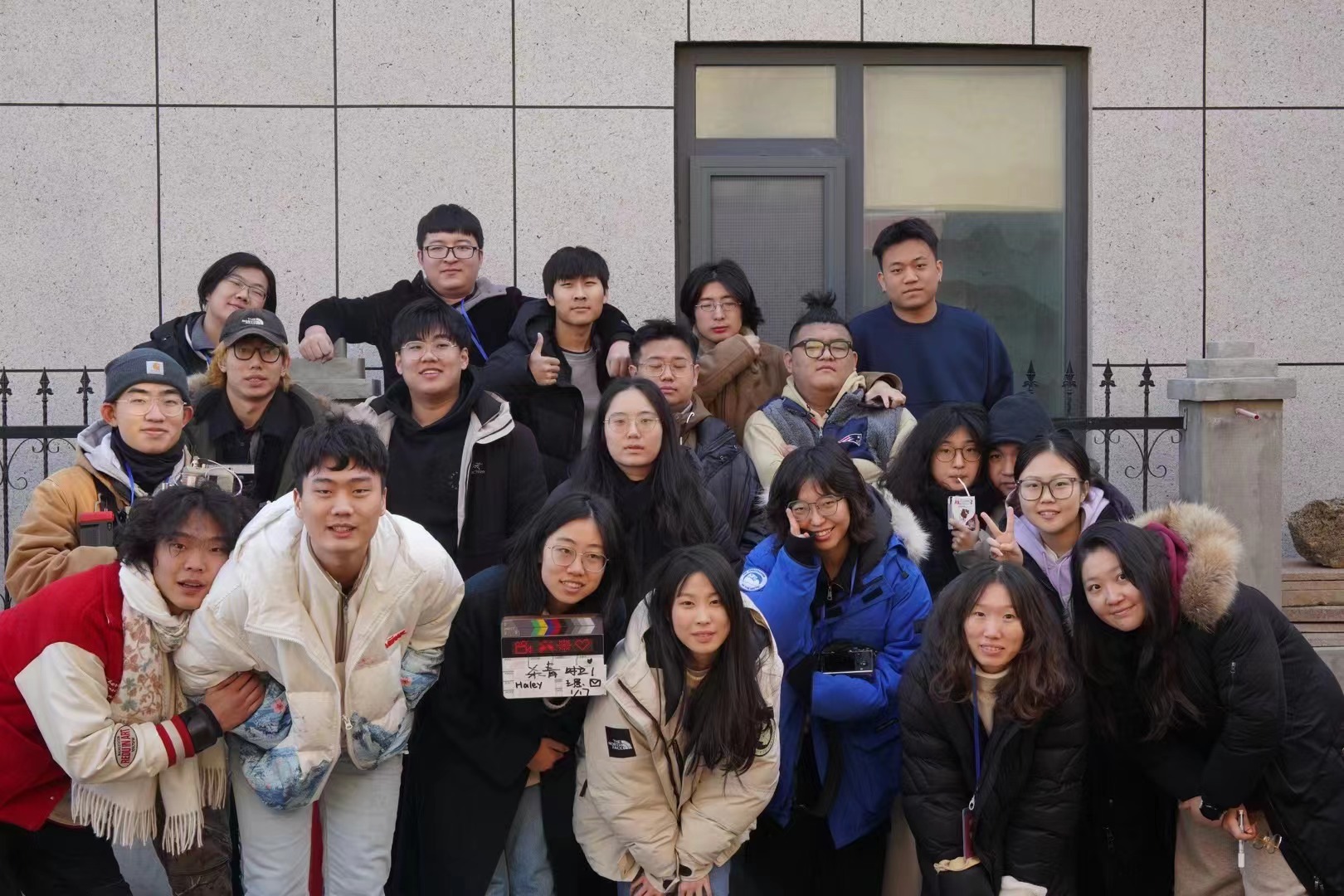 苏予涵(前排右二)和剧组在山东威海