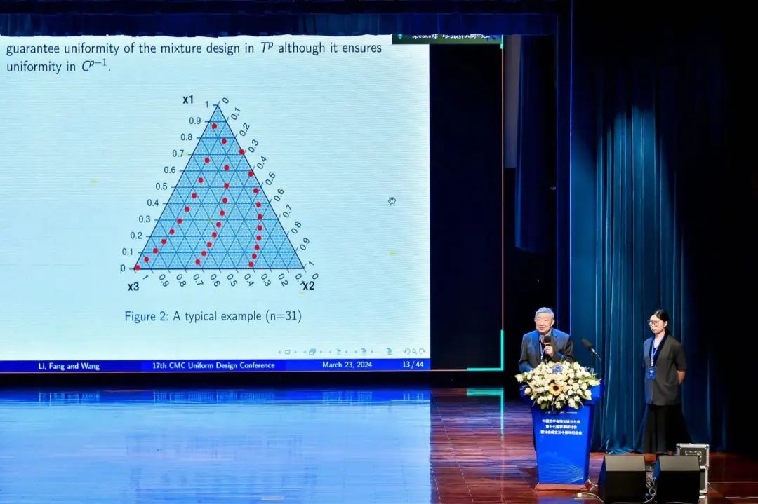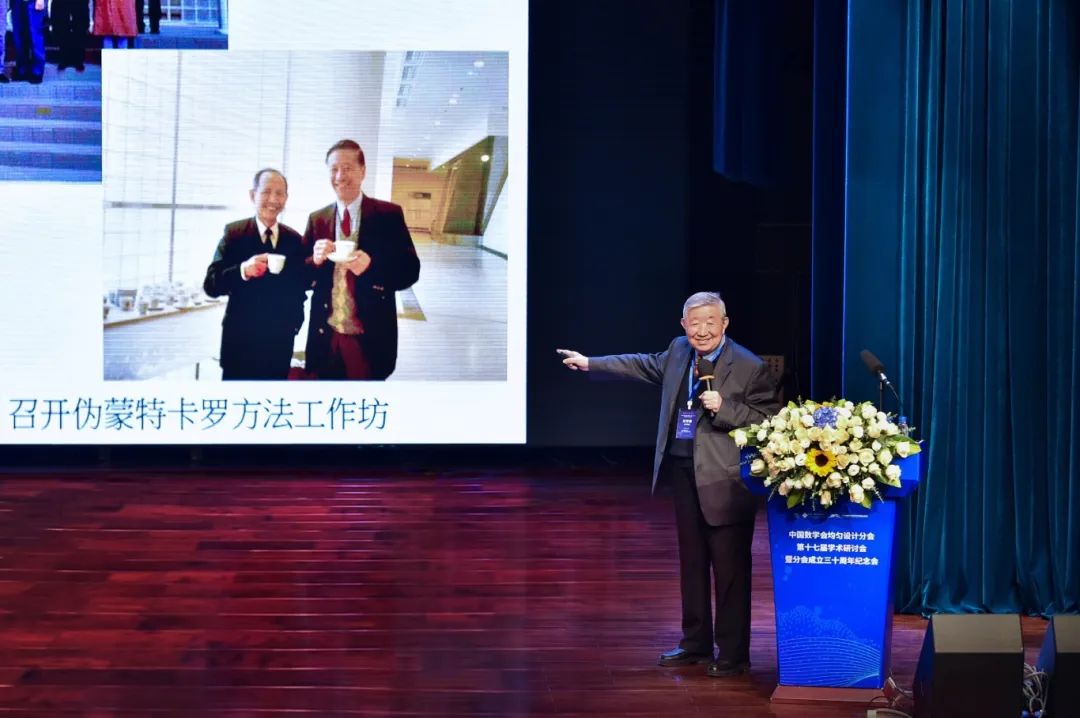 方开泰教授在纪念大会上分享了中国数学会均匀设计分会的成立背景、钱学森院士的高度评价、均匀设计理论和应用发展的历程以及均匀设计和建模软件系统的研制,并详细介绍了均匀设计分会的重要事件、历届理事会和学术研讨会概况,同时特别感谢香港浸会大学和北师港浸大的鼎力支持。方教授对学会的未来发展提出了建议和寄语,期待均匀设计分会在理论研究、成果推广等方面取得更大的成绩。