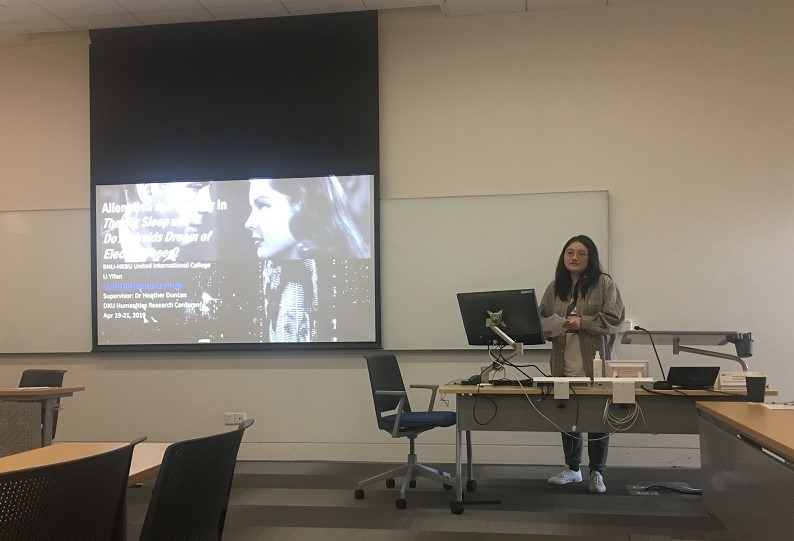 2019年4月19日至21日,在昆山杜克大学举办的首届本科人文社科研讨会上,来自北师港浸大(UIC)人文与社会科学学部及工商管理学部的四名同学受邀参会并发表了自己的研究论文。其中,大四英语语言文学专业李宜繁同学的论文《〈长眠不醒〉与〈仿生人会梦见电子羊吗〉中的疏离与绝望》获得了最佳论文奖。