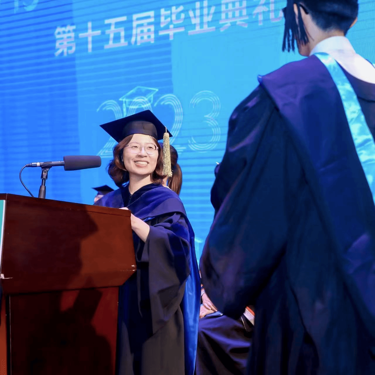 卫改兰博士(左)在北师港浸大第十五届毕业典礼上