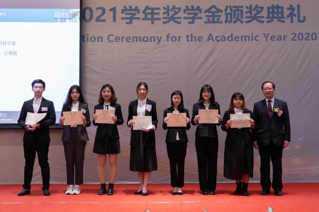 典礼还颁发了2021年新生入学奖学金、入学奖续得(全额)、来华留学生入学奖学金、广东省政府来粤留学生奖学金和台湾在校生奖学金