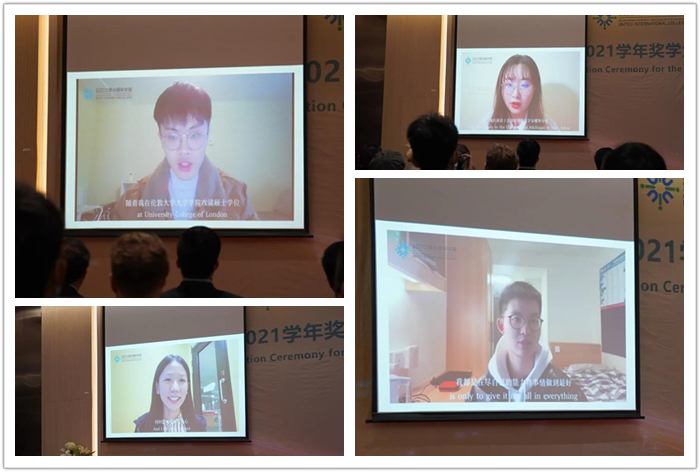 本学年度学校新增了三项奖学金,其中“校长荣誉奖学金”和“院长推荐奖学金”激励在校学生刻苦学习,各学科均衡发展,在学术方面有更好的表现;而“优秀毕业生奖学金”旨在鼓励毕业生在今后的求学路上有更出色的学业表现,也激励所有同学保持优异成绩。获得该奖项的毕业生用视频的方式发表了获奖感言,表达了对母校的感谢。