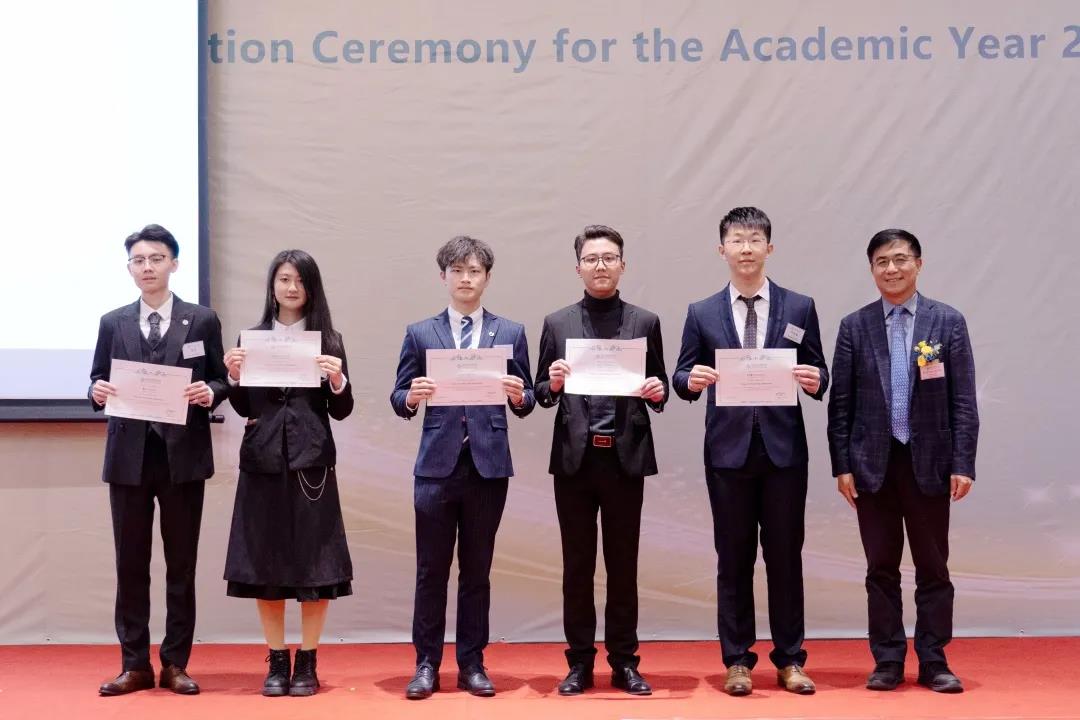 副校长(研究和拓展)、研究生院院长贾维嘉教授(右一)为一等奖学金获得者代表和实习实践奖学金获奖者颁奖