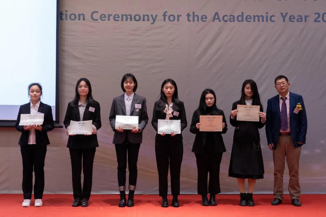 协理副校长(国际发展)、人文与社会科学学部院长贝力行教授(右一)为院长推荐奖学金获得者颁奖