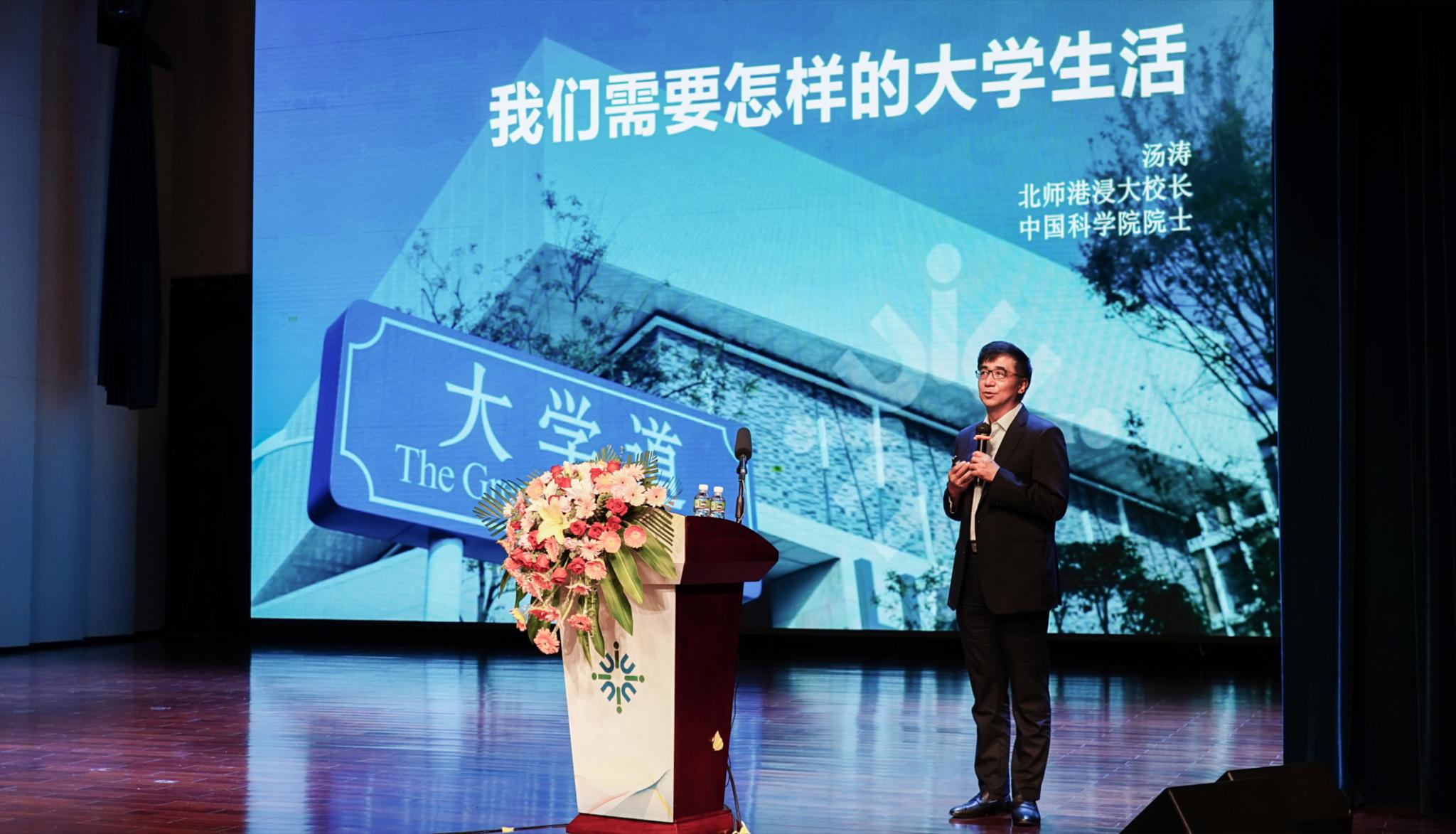 2022年9月14日,中国科学院院士、欧洲科学院院士、北师港浸大(UIC)校长汤涛教授在演艺厅为同学们讲授了本学期的“校长思政第一课”,以“我们需要怎样的大学生活”为题,吸引了线上线下逾两千名师生参加。