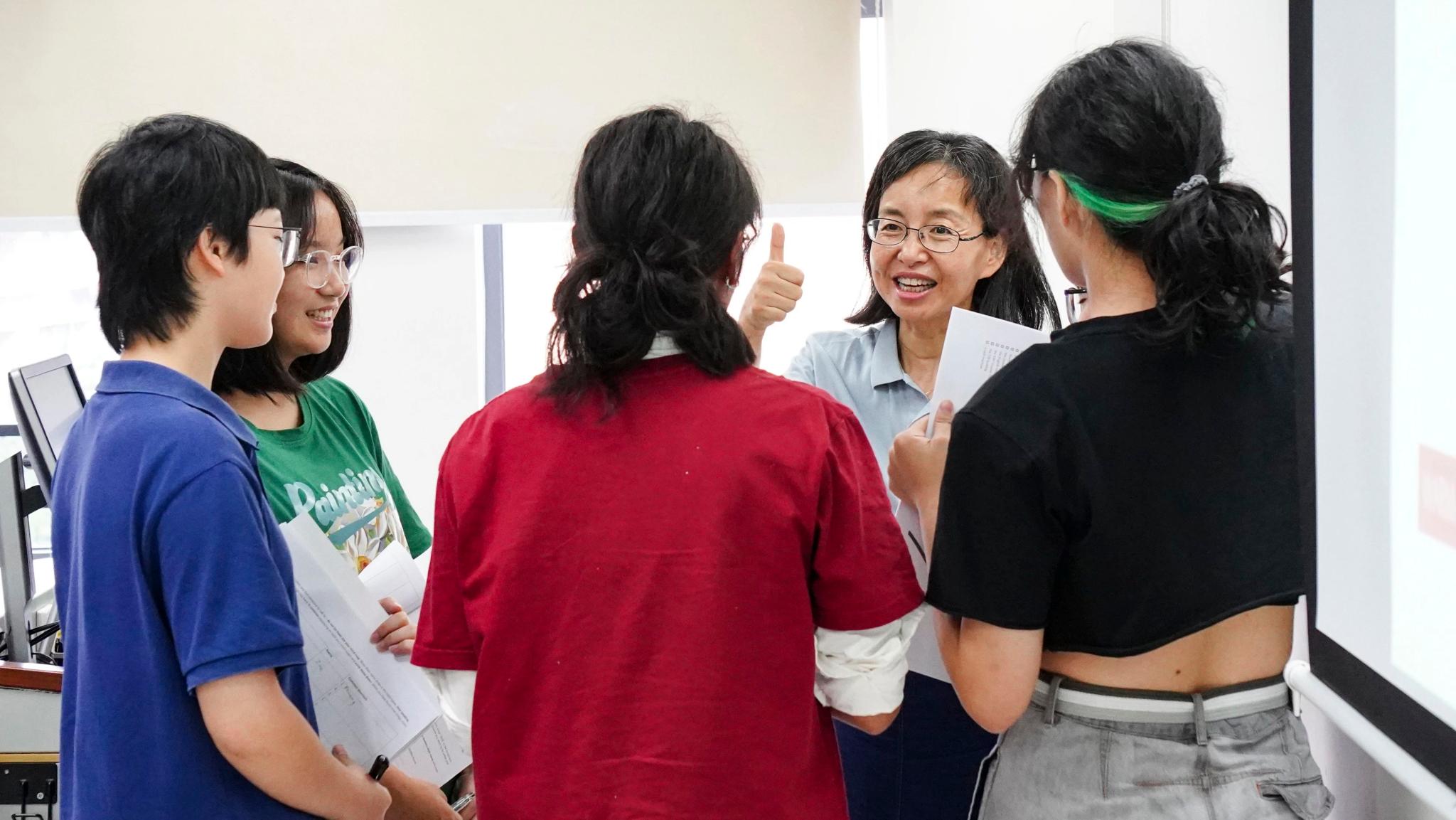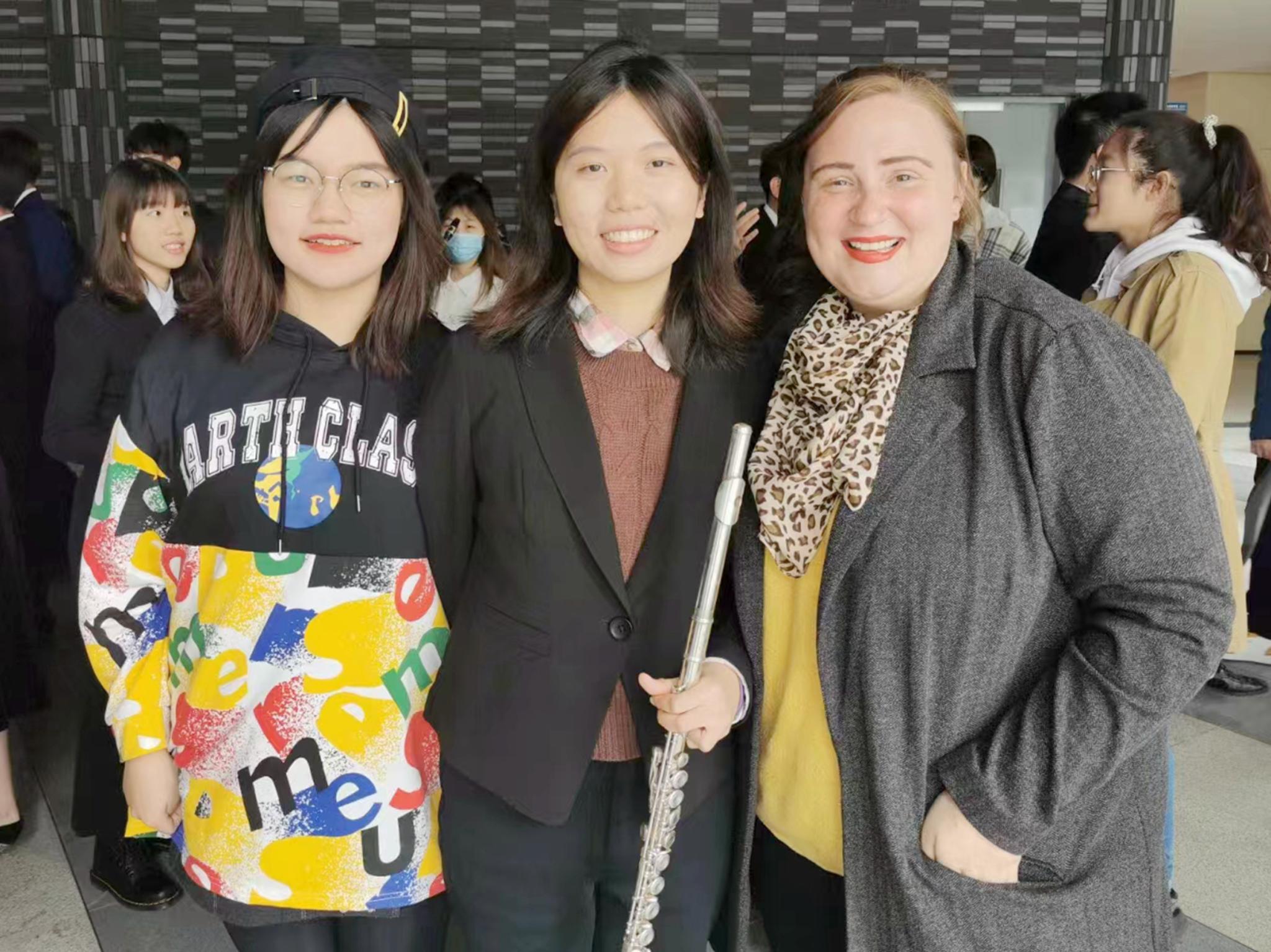 周念妤(左一)和老师及同学一起参加午间音乐会
