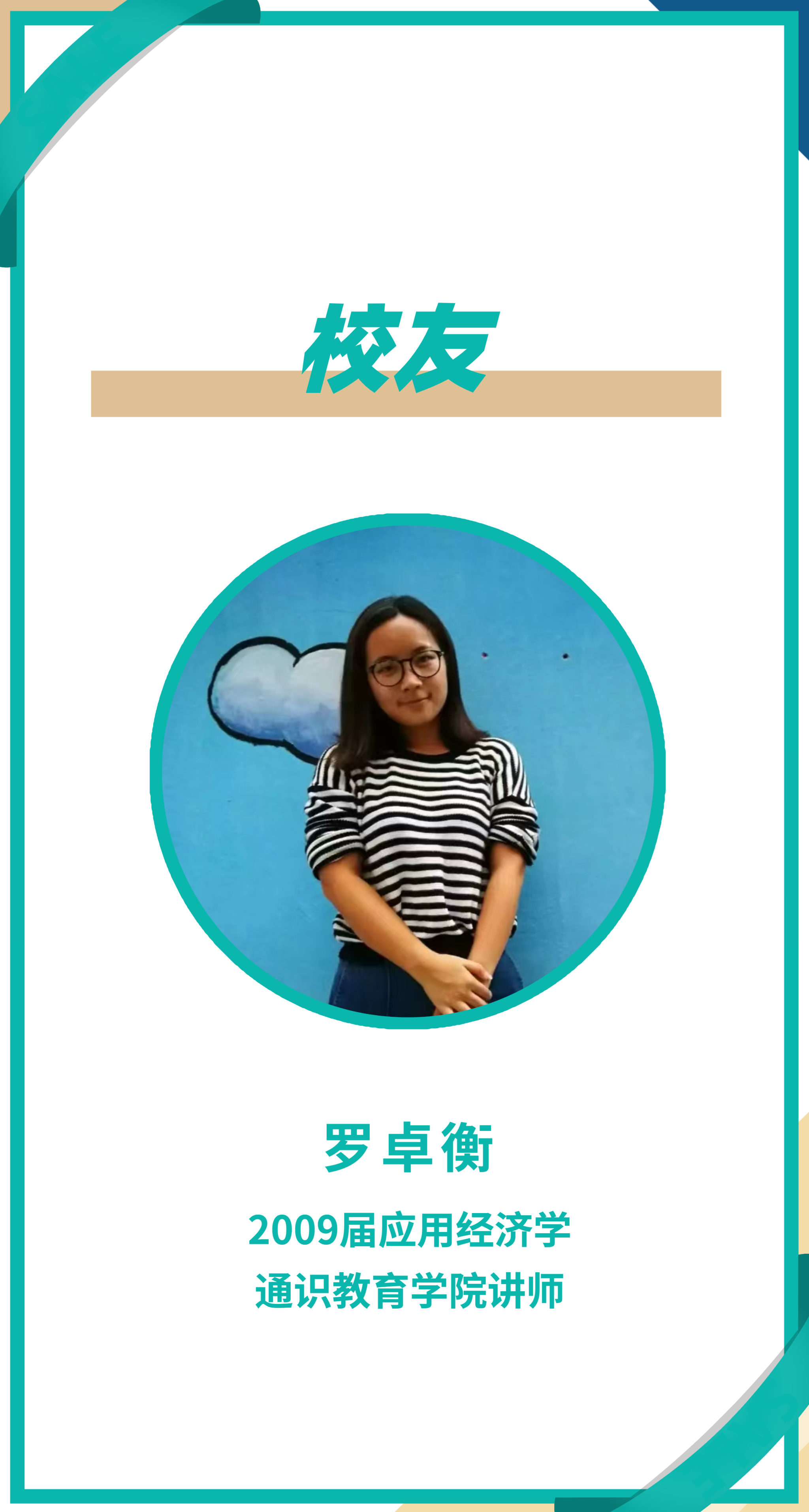 罗卓衡老师已经在UIC通识教育学院全人教育中心任职超过十年。作为UIC的第一届毕业生,她认为,“返回母校任教,让我可以换一个角度来思考自己所关注的社会领域。也希望学生可以通过我的课程,把学习场所延伸到公益组织、帮助困难群体活动中,拓展全人教育的意义。”在UIC博雅教育理念之下,罗卓衡不断探索着个人专长、教学目标、学生需求和体验感的平衡。