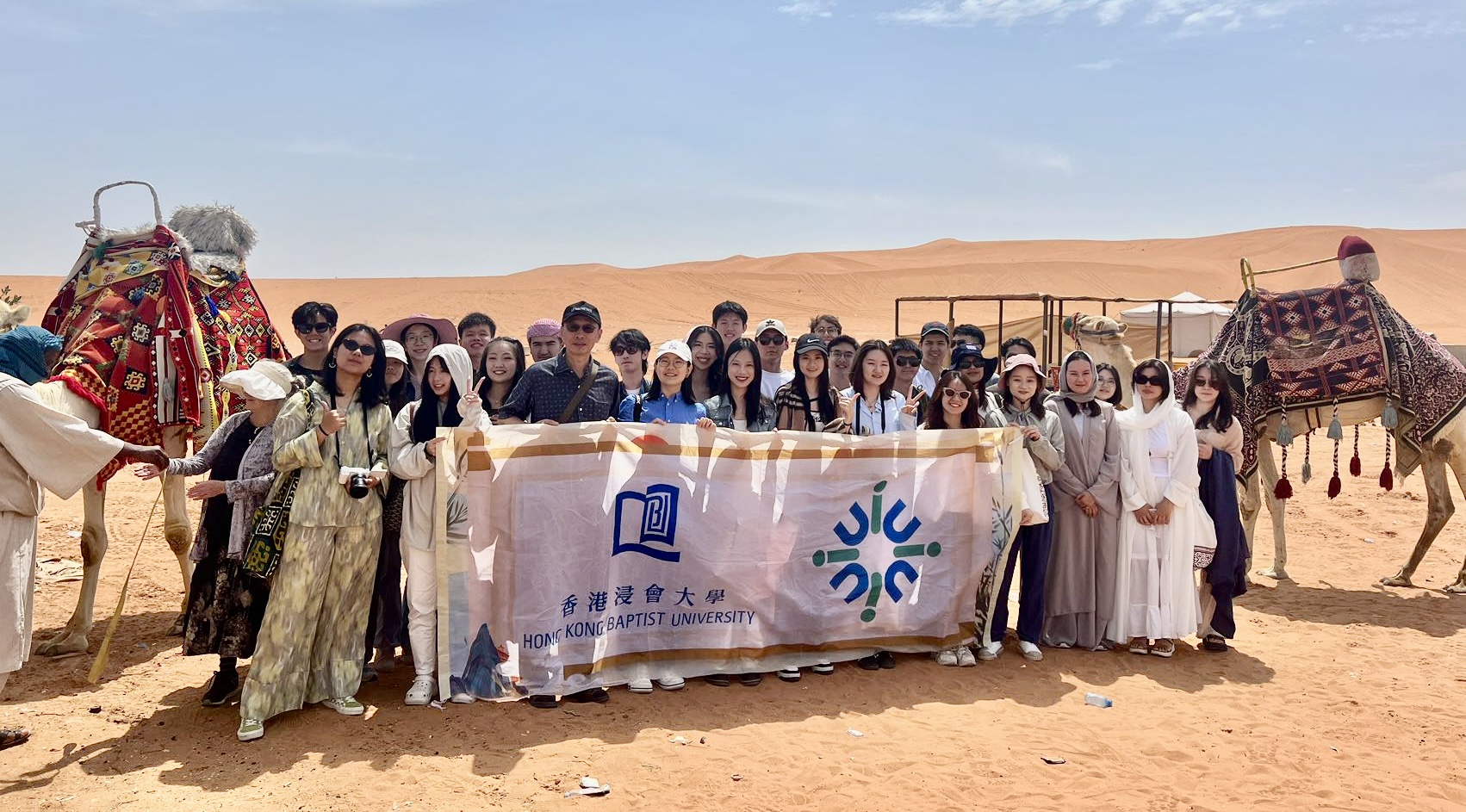 近日,香港浸会大学和北师港浸大(UIC)组织了以“一带一路”为主题,为期一周的中东文化探索学习。游学团由来自8个国家及地区的29名学生组成,3位教职员带队。跨越千山万水,带着对知识的渴望和对国际交流的向往,踏上了这片充满异域风情的土地。本次游学共到访阿联酋和沙特阿拉伯2个国家、3座城市、2家大学、4家机构。