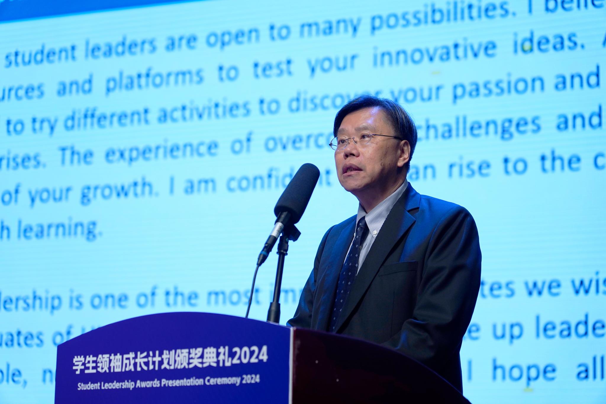 学生领袖成长计划颁奖典礼上,常务副校长周荫强教授致辞