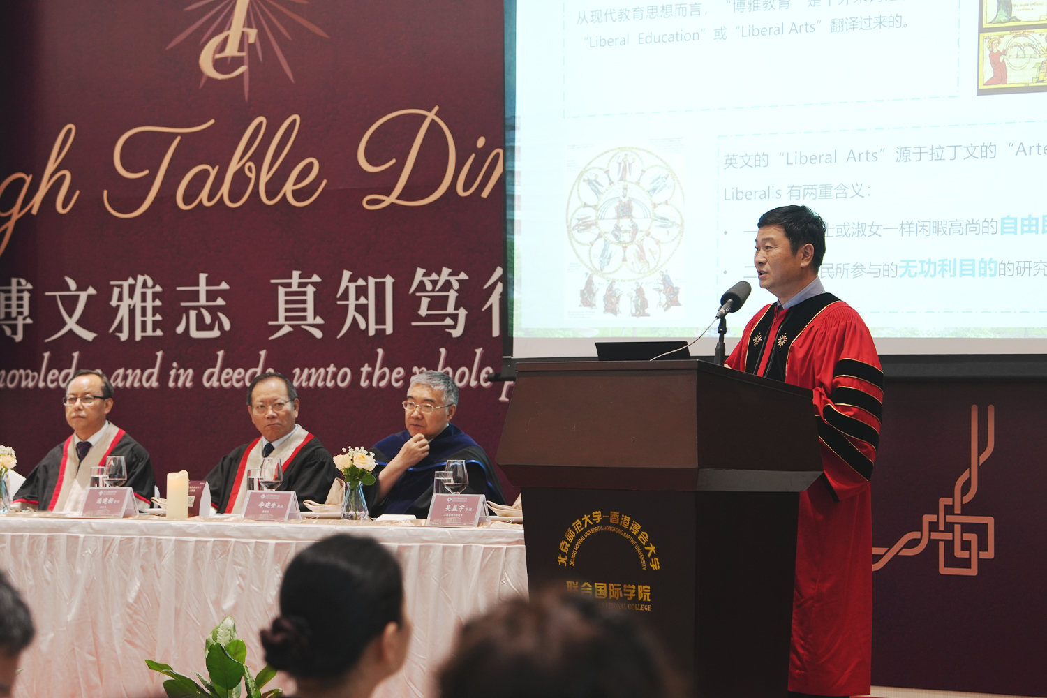 2024年8月21日晚,北师港浸大举行2024级新生家长高桌晚宴,校长、教授与家长们齐聚一堂。宴前,北师港浸大校长陈致教授发表《校长第一课:推开大学之门》演讲,为家长们介绍了北师港浸大独特的博雅教育理念。