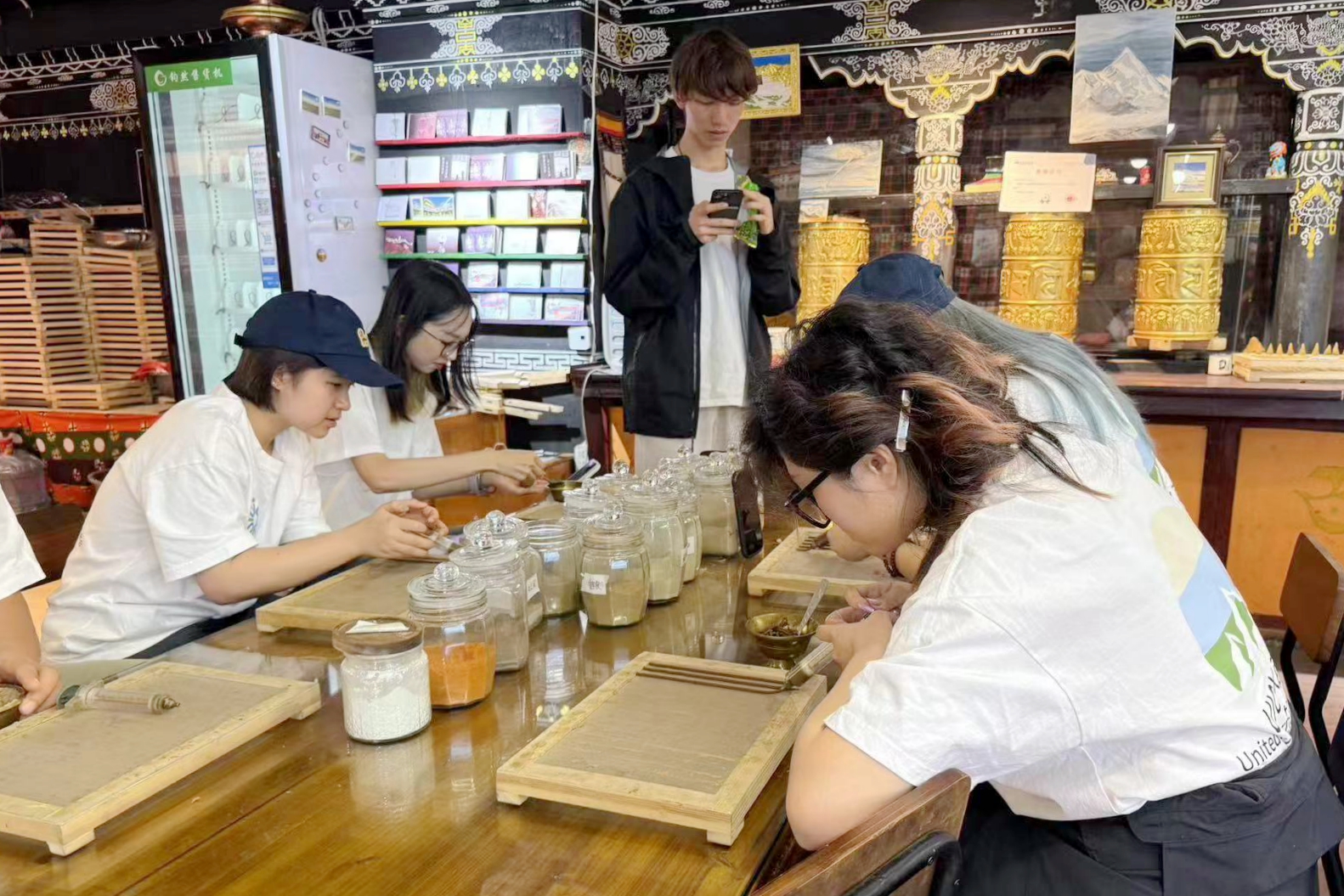 学生在西藏文化学习营体验藏香制作