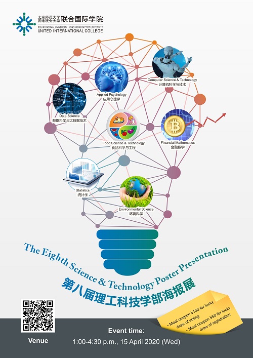 疫情尚未过去,学术研究从未停止。北师港浸大(UIC)理工科技学部第八届学生研究成果海报展于4月15日在线上举行,评委和师生们通过网络会议系统观看同学在线展示研究,并通过计算机科学与技术专业和数据科学专业同学开发的活动管理系统投票。本次共展出了74个学生研究项目,涉及学前幼儿心理、用新闻预测股票走势、抗击糖尿病、珠海海草床生态等课题。