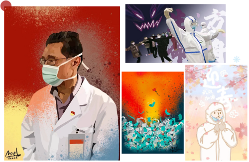 同学们创作抗“疫”海报表达对疫情的思考