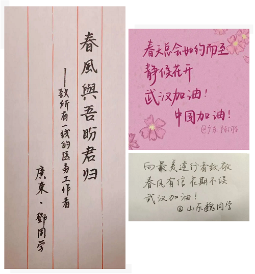 同学们手写加油,为抗“疫”接力