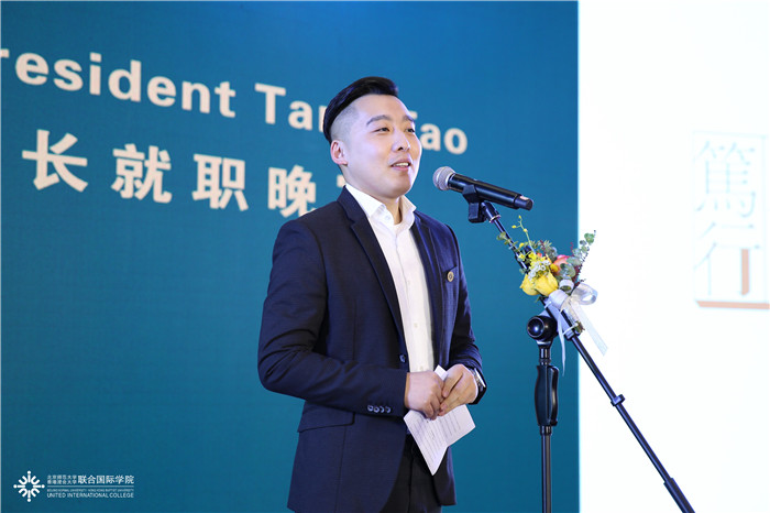 学校的发展是学生、校友、家长共同见证的。学生会干事会的主席、大三公共关系与广告专业的温灿代表北师港浸大学生对汤涛校长的上任表达了真诚的欢迎。
