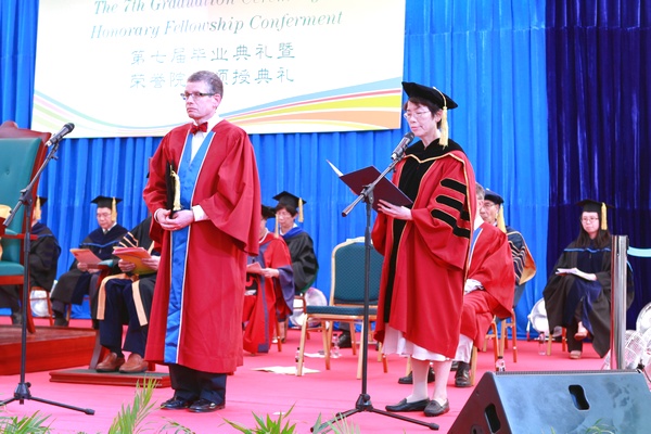 四位荣誉院士的赞辞分别由理工科技学部院长钟森文教授、人文与社会科学部副院长兼电影电视专业课程主任麦莉娟教授、人文与社会科学部院长宋美璍教授和中国语言文化中心主任伍鸿宇博士宣读。