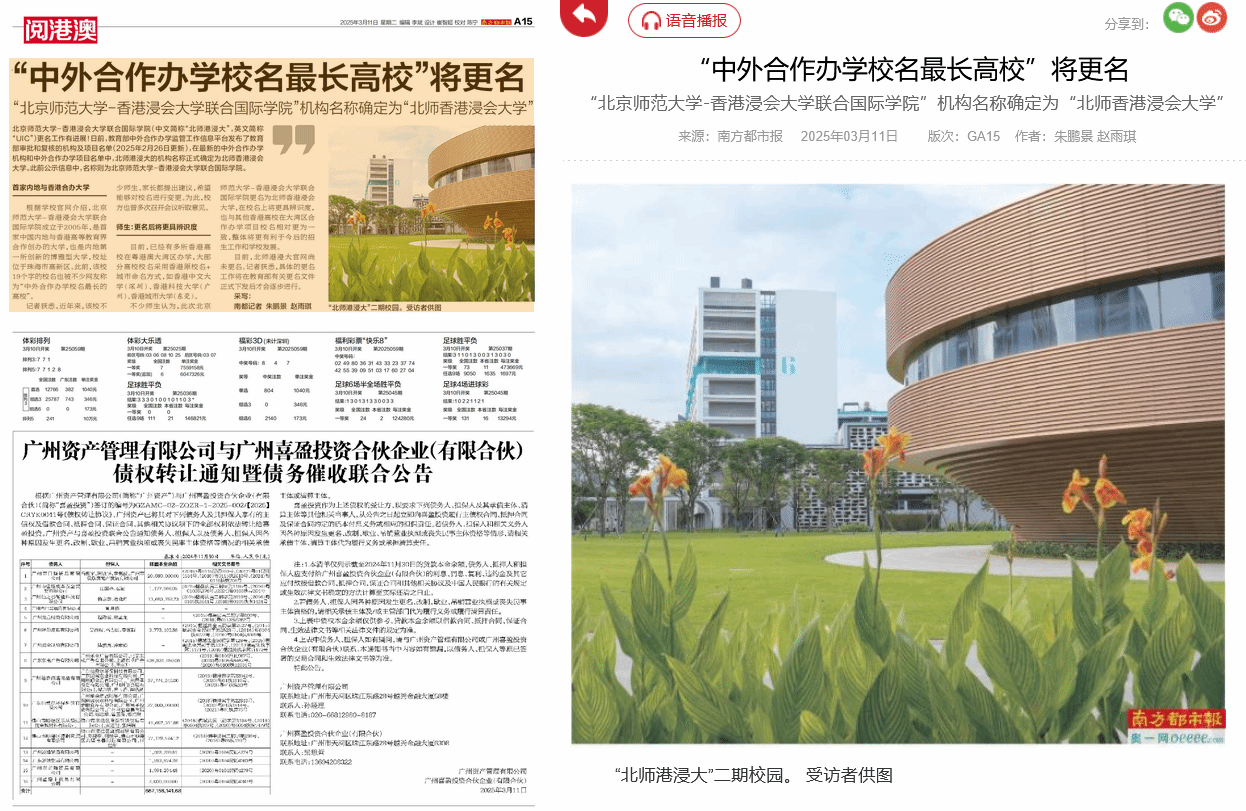 目前,北师港浸大官网尚未更名。记者获悉,具体的更名工作将在教育部有关更名文件正式下发后才会逐步进行。