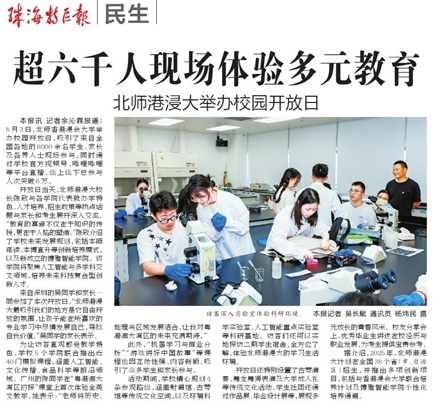 本报讯 记者余沁霖报道:5月2日,北师香港浸会大学举办校园开放日,吸引了来自全国各地的6000余名学生、家长及各界人士现场参与,同时通过学校官方视频号、哔哩哔哩等平台直播,线上线下总参与人次突破6万。