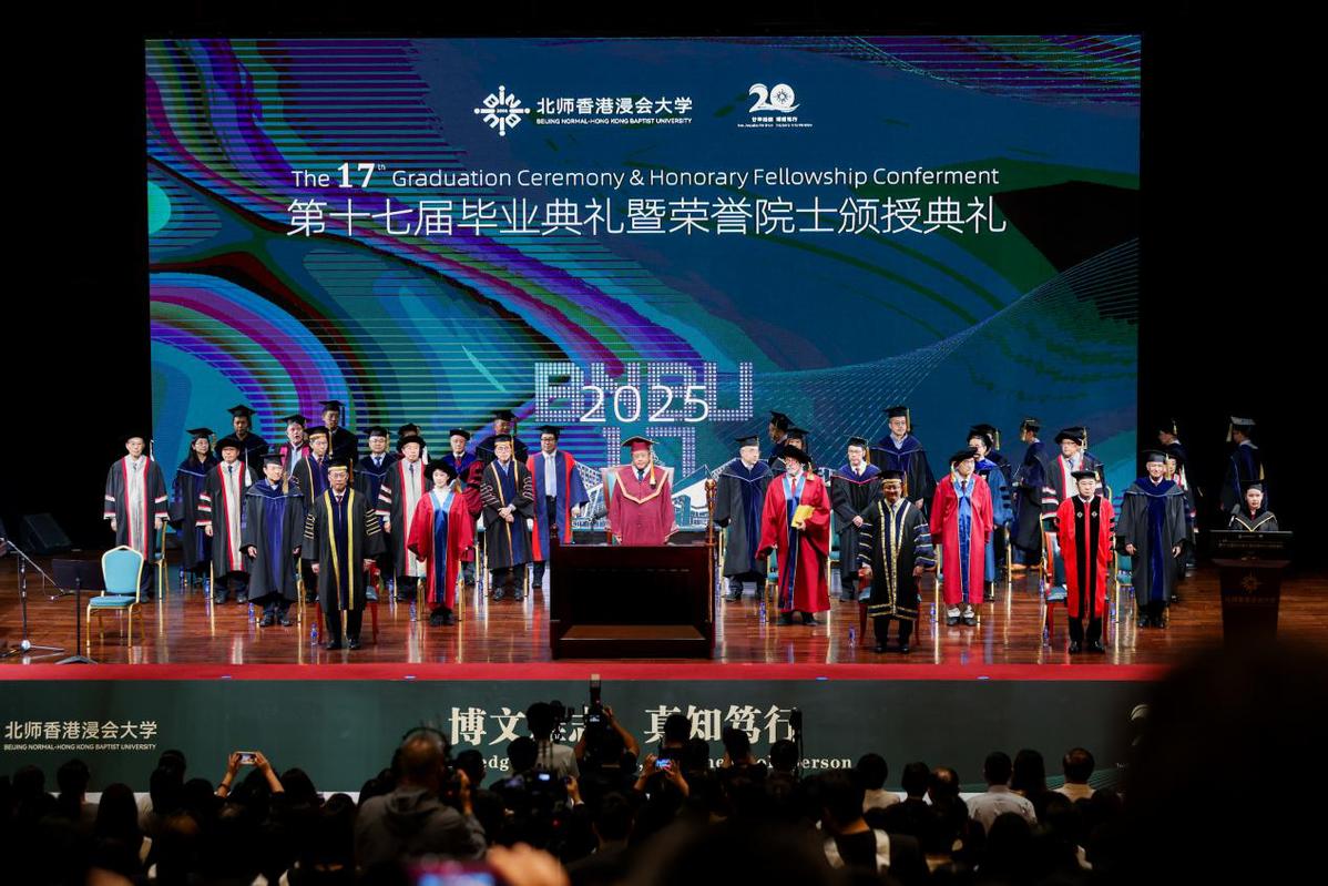 北师香港浸会大学(中文简称:北师港浸大;英文简称:BNBU)于6月8日举行第十七届毕业典礼暨荣誉院士颁授典礼,颁授荣誉院士荣衔予五位来自科学、教育、文化等不同领域的杰出人士,以表彰其在专业领域取得的卓越成就、对社会发展的突出贡献,以及对北师港浸大的支持。