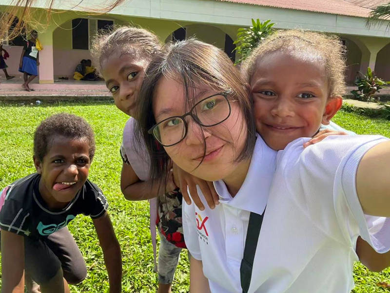 北师香港浸会大学(BNBU)学生罗凯宁(右二)在瓦努阿图