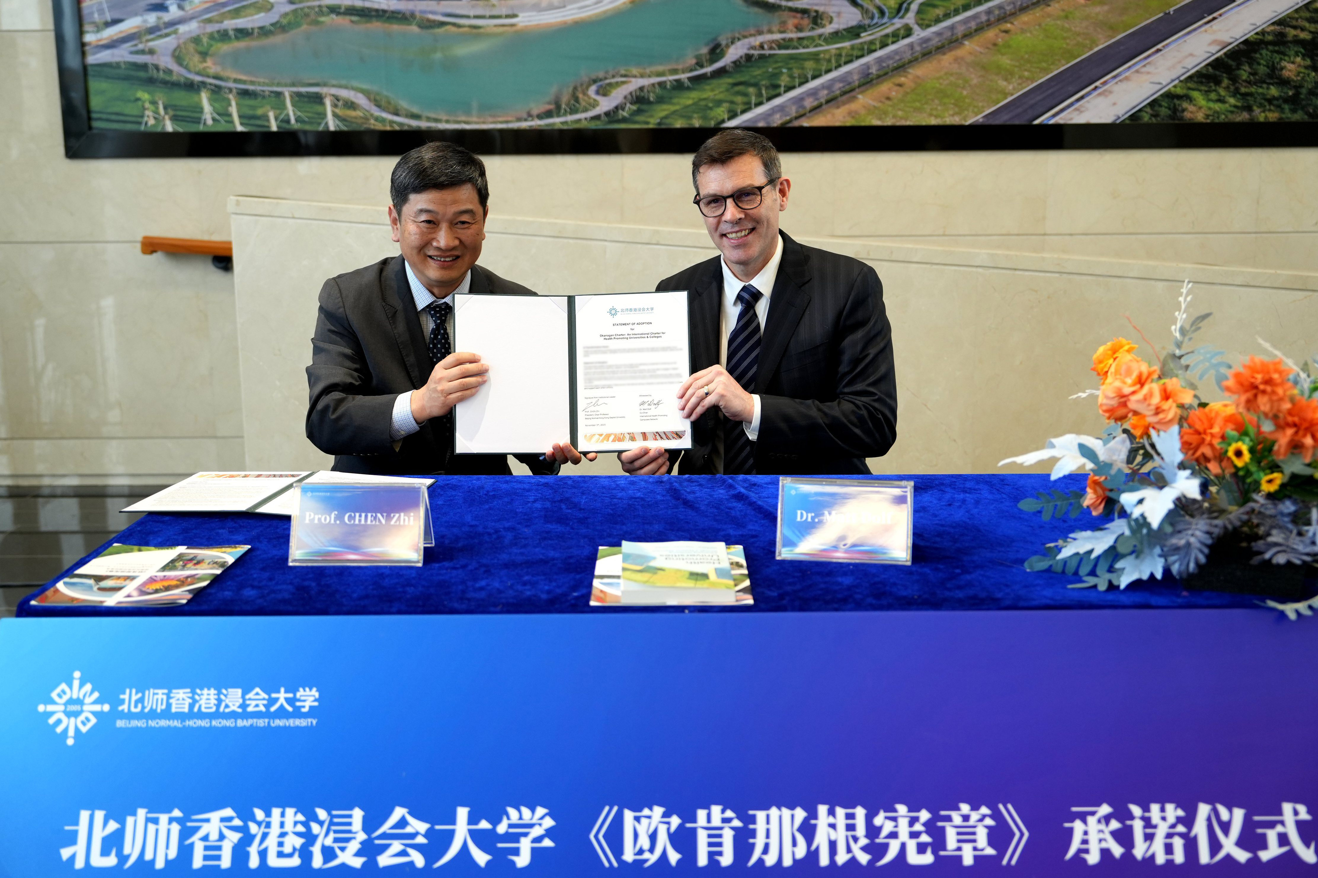 日前,北师香港浸会大学(中文简称“北师港浸大”;英文简称“BNBU”)举行《欧肯那根宪章-健康促进高校国际宣言》签署仪式,正式加入此项全球性的健康促进行动,成为中国首所签署该宪章的高校。值得一提的是,该宪章的官方中文版本由北师港浸大的师生翻译完成。