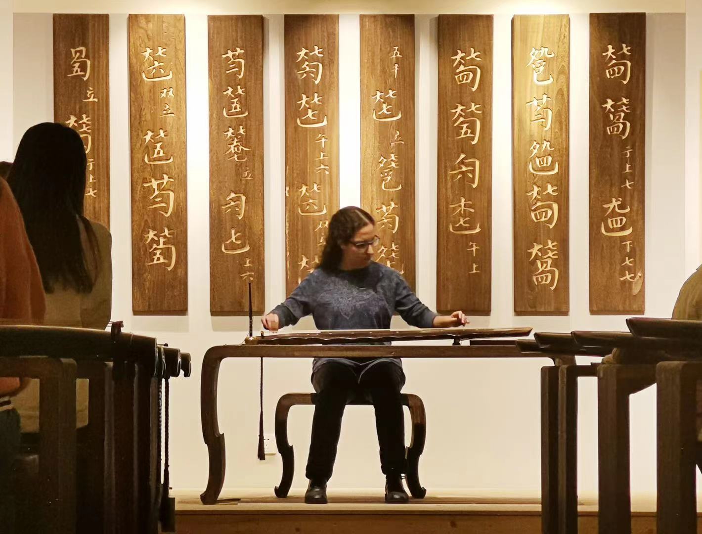 除了学习汉语,Rebecca还在UIC学习了古琴弹奏。悠扬空灵的古琴曲让Rebecca着迷。UIC南海清音古琴社的老师和同学贴心地用英语教她弹古琴。如今她已能熟练弹奏《仙翁操》和《秋风词》两首古琴曲。