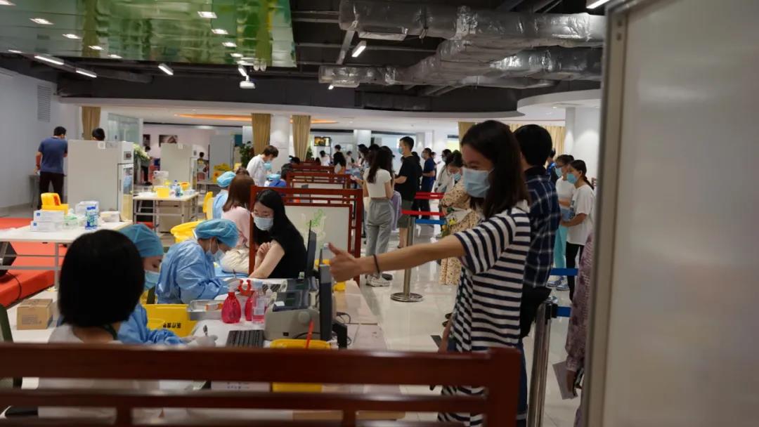现场看到,位于UIC师生活动中心二楼的接种点内,学校教职工、大学生井然有序地排队,在志愿者及医护工作者的指引下有条不紊地接受疫苗接种。