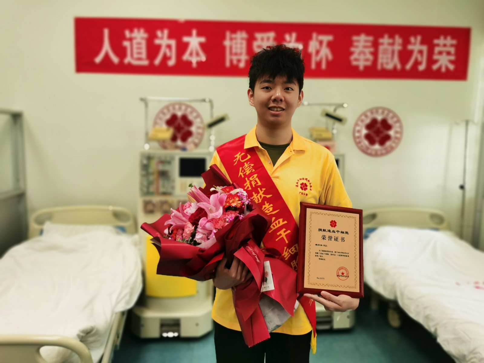 姚梓泓提到,在捐獻過程中,他所在的血液科有許多住院患者仍在等待捐獻。每次看到他們,姚梓泓都會想到那位素未謀面的受捐者。「我只是做了一個小小的決定,卻能在百萬分之一的概率中挽救一位患者的性命,這對我來說是一件幸運的事。希望有更多的人能得到幫助。」