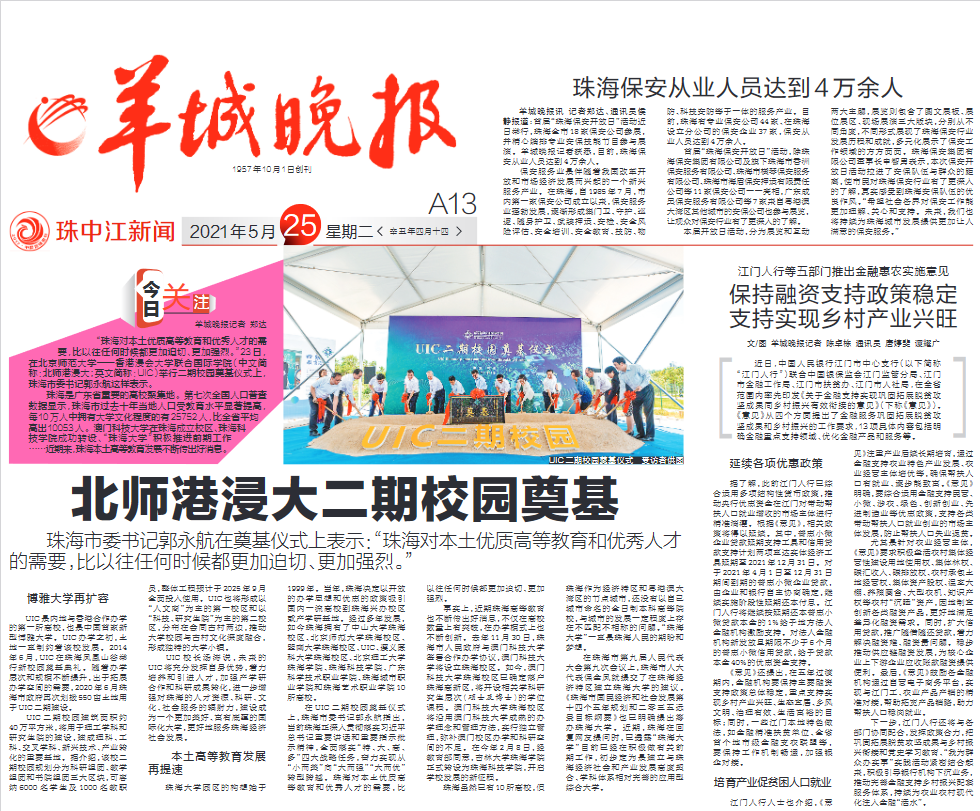 在UIC二期校园奠基仪式上,珠海市委书记郭永航指出,当前珠海正深入贯彻落实习近平总书记重要讲话和重要指示批示精神,全面落实“特、大、高、多”四大战略任务,奋力实现从“小而美”向“大而强”“大而优”转型跨越。珠海对本土优质高等教育和优秀人才的需要,比以往任何时候都更加迫切、更加强烈。
