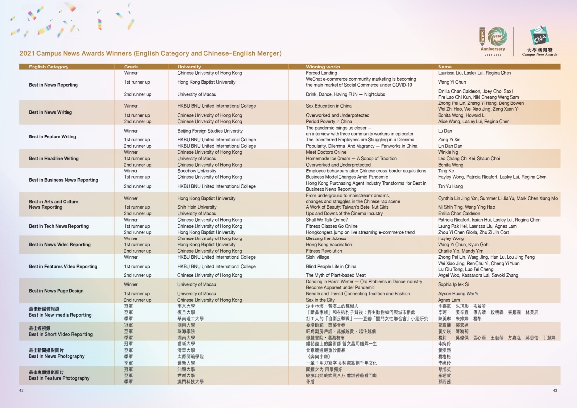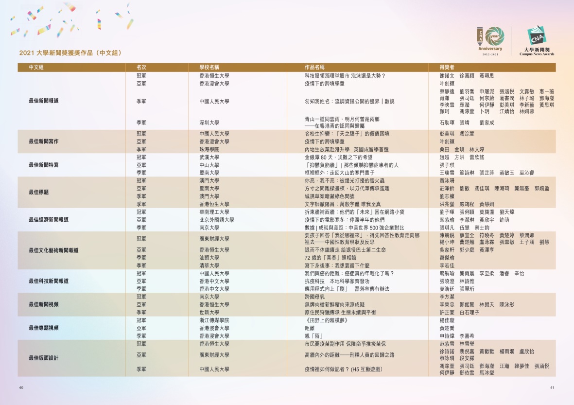 “2021大学新闻奖”获奖名单