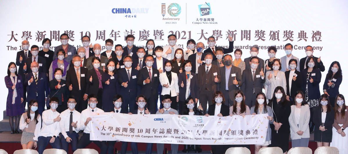中国日报香港12月9日电(记者张耀月张亢)由中国日报举办的“大学新闻奖10周年志庆暨2021大学新闻奖颁奖典礼”今日在香港举行。香港特别行政区政务司司长李家超主礼并致辞,香港中联办宣文部副部长郑琳、香港中联办台务部副部长肖洪、香港特别行政区教育局副局长蔡若莲、香港特别行政区政府新闻处署理处长吴绮媚、香港大公文汇传媒集团副董事长兼总编辑李大宏等嘉宾,以及150位师生和新闻界人士出席。