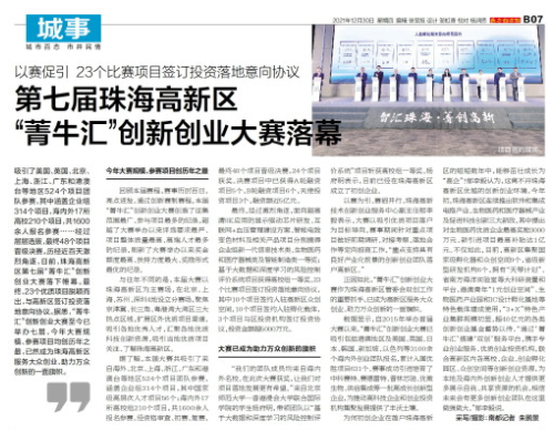 2021.12.30[南方都市报]--第七届珠海高新区“菁牛汇”创新创业大赛落幕