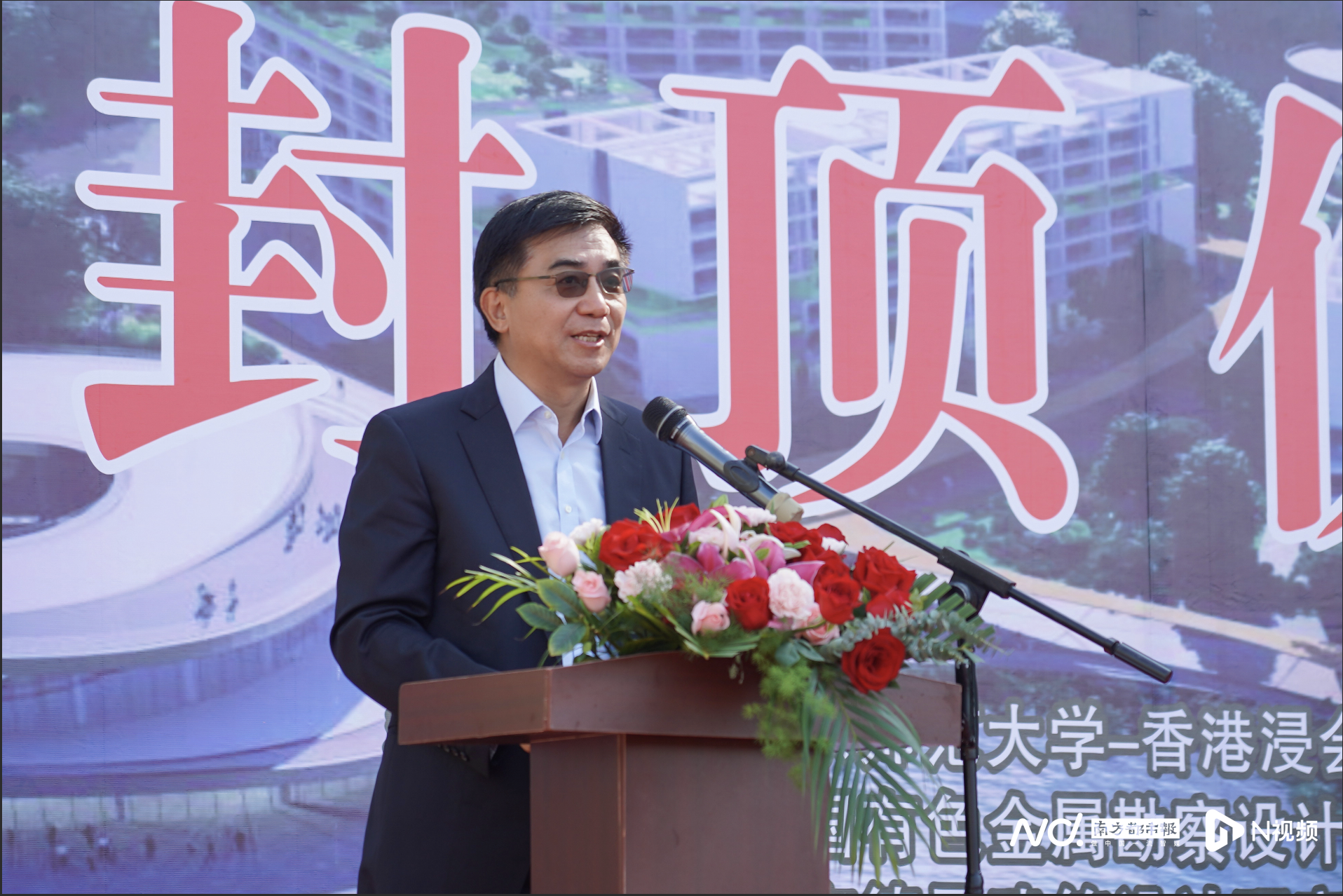 中国科学院院士、欧洲科学院院士、UIC校长汤涛教授在致辞时感谢参与工程设计、施工建设及管理单位的努力,他表示,UIC扎根珠海十多年,从最开始校园在金凤路的“1.0版本”,到2017年搬到金同路校园的“2.0版本”,到今天二期校园书院组团楼栋封顶,代表了UIC校园开启“3.0版本”。他希望各相关单位继续紧密配合,保证工程的安全和质量。