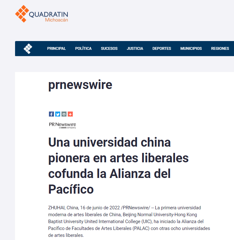 ZHUHAI, China, June 16, 2022 /PRNewswire/ -- China’s first modern liberal arts college, Beijing Normal University-Hong Kong Baptist University United International College (UIC), has initiated the Pacific Alliance of Liberal Arts Colleges (PALAC) with eight other liberal arts universities.