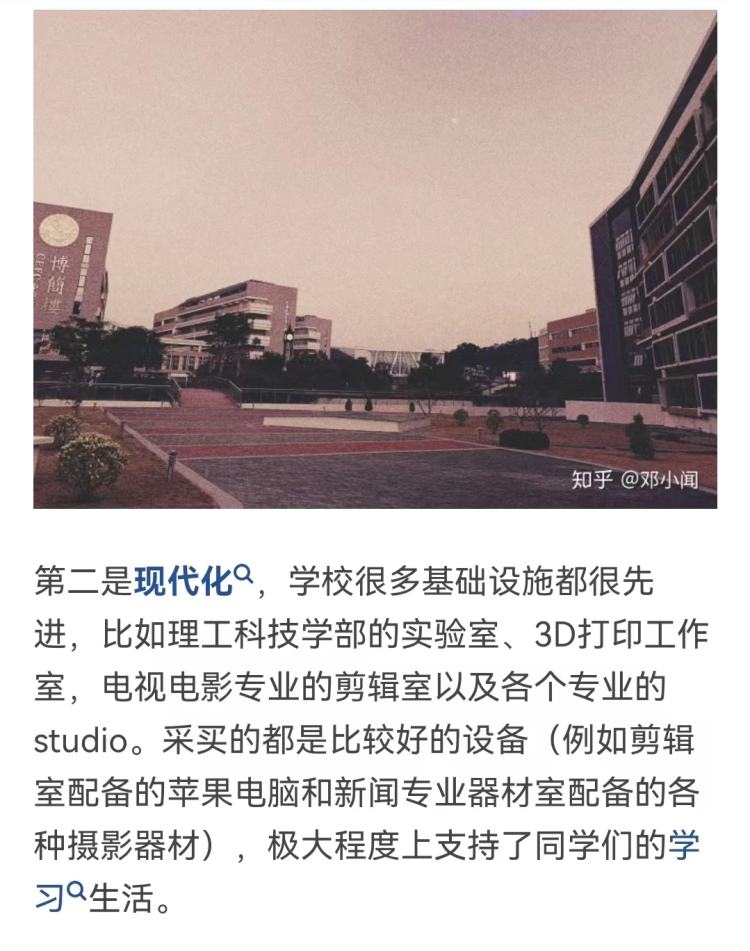 有同学在知乎上表示北师港浸大配备的器材很先进。/知乎截图