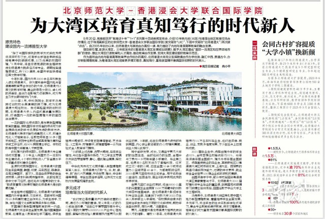作为首所由内地与香港高等教育界合作创办的高校,北师港浸大将充分发挥跨境合作办学优势,融汇中西,贯通古今,办好新型博雅教育,为粤港澳大湾区培育更多博文雅志、真知笃行,富有家国情怀兼具国际视野的时代新人。