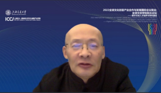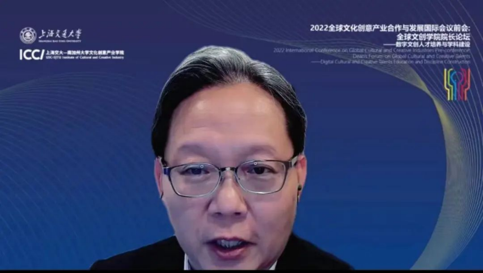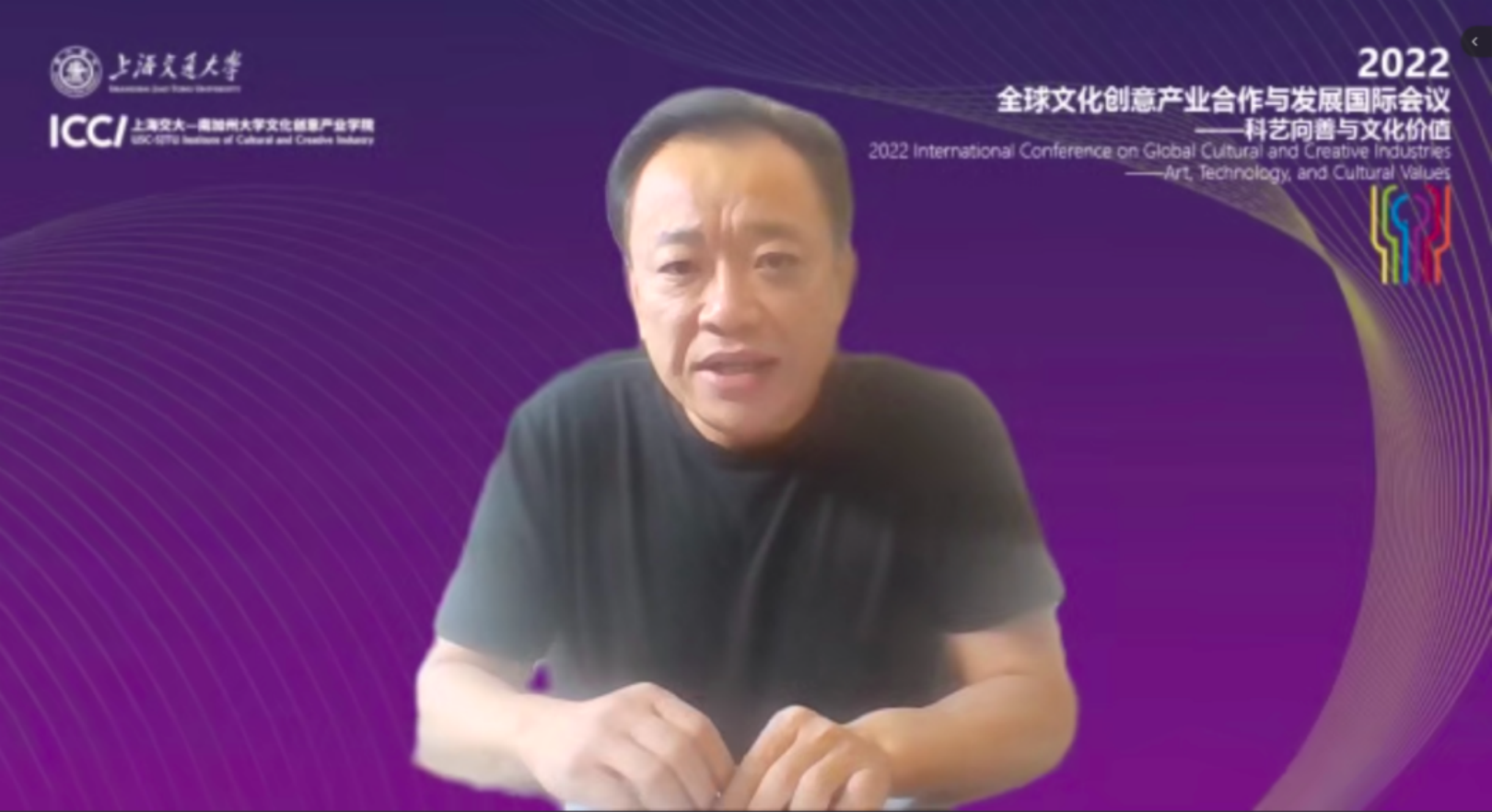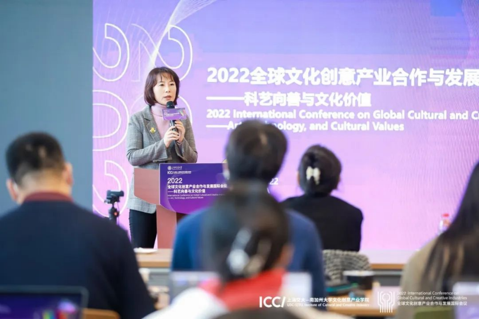 2022全球文化创意产业合作与发展国际会议主席、上海交通大学文创学院副院长薛可向与会嘉宾介绍大会主旨,文创产业的迭代转型与技术革新要求我们不断再思文化价值、定位科技人伦,以科艺向善来引导文创产业正向发展。薛可教授进一步提出了“大学应培养何种文创人才”这一关键问题,来具体回应我国文创产业的蓬勃之势。