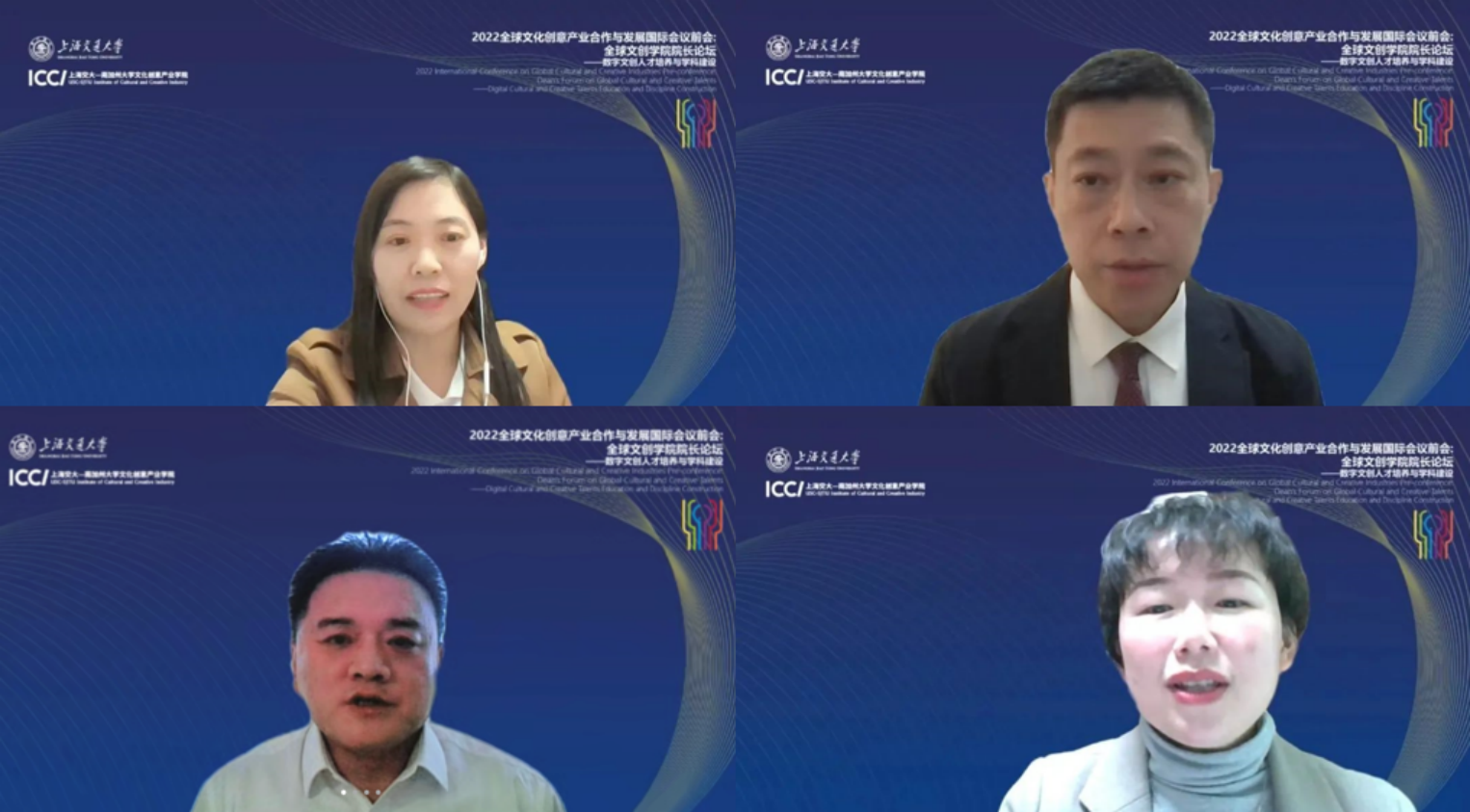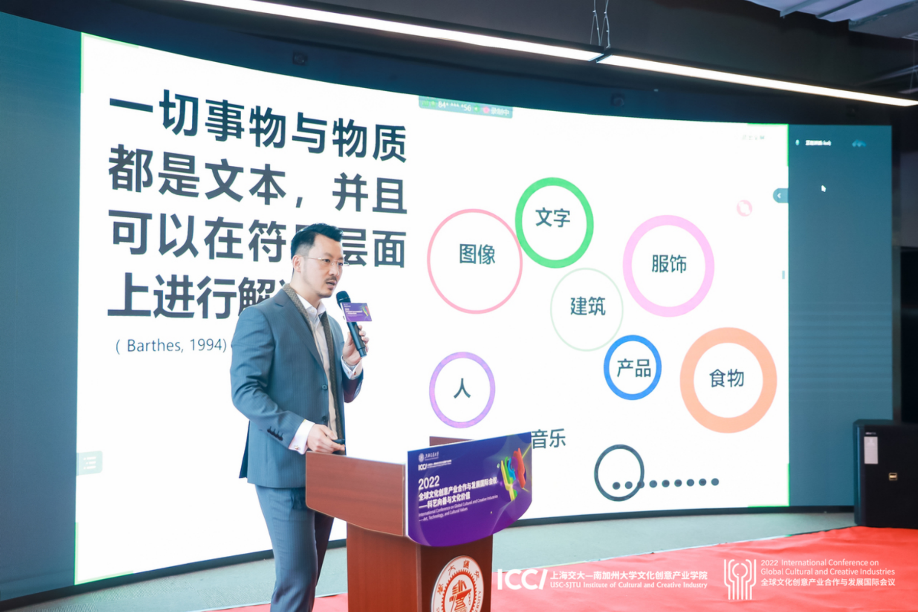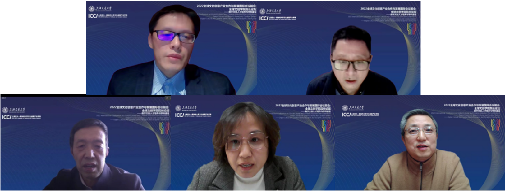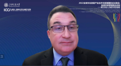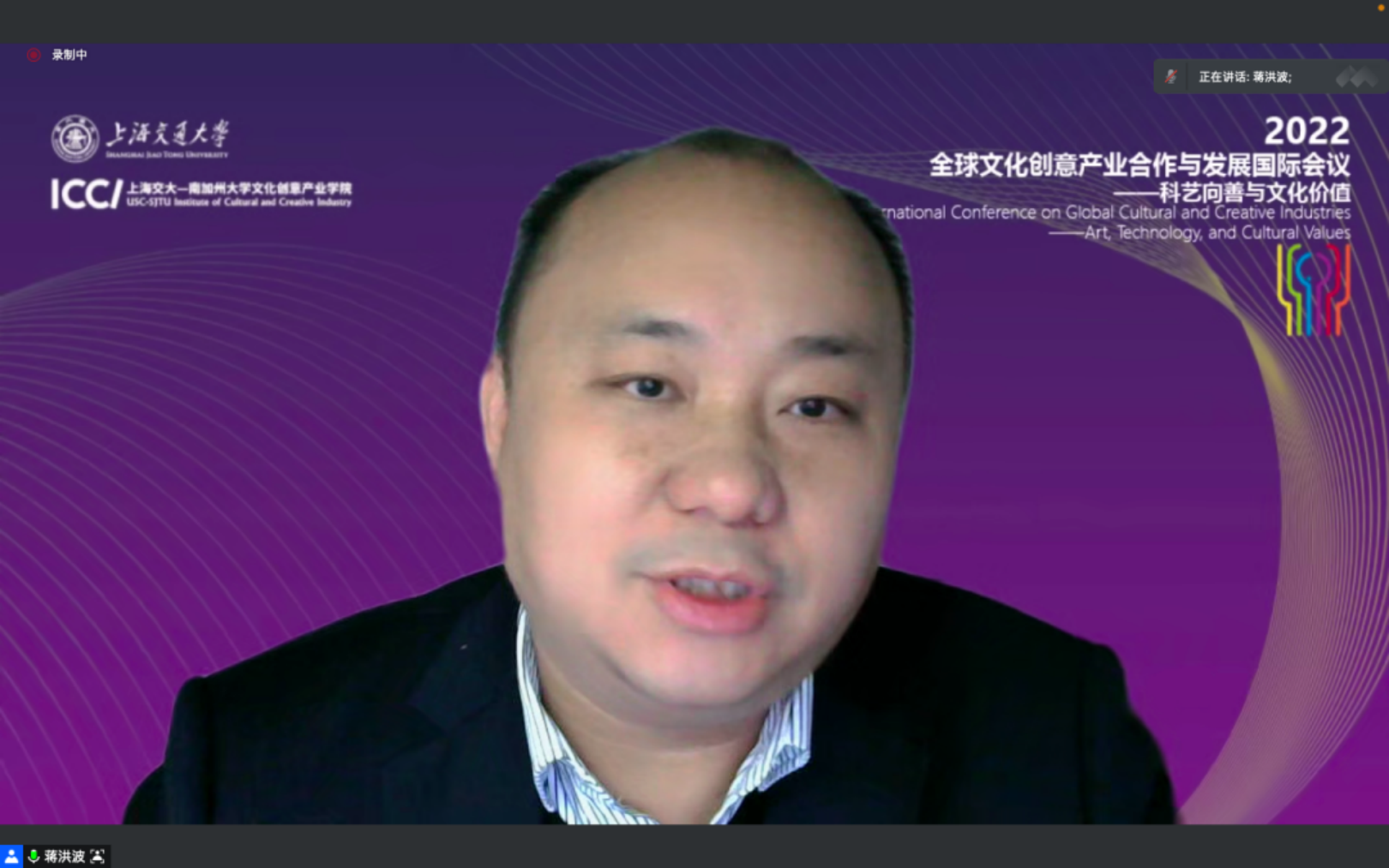 2022全球文化创意产业合作与发展国际会议主席、上海交通大学文创学院副院长薛可向与会嘉宾介绍大会主旨,文创产业的迭代转型与技术革新要求我们不断再思文化价值、定位科技人伦,以科艺向善来引导文创产业正向发展。薛可教授进一步提出了“大学应培养何种文创人才”这一关键问题,来具体回应我国文创产业的蓬勃之势。