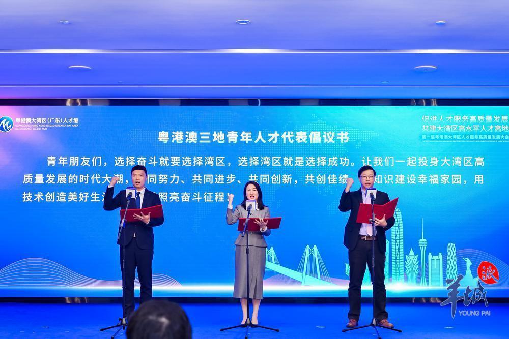 大会现场还为高层次人才代表颁发人才优粤卡,为粤港澳大湾区(广东)人才馆揭牌。三地青年人才代表共同发出倡议,建议粤港澳三地共同建设更加开放、更加融通、更有活力、更优服务的“人才湾区”,让广大青年拥有更多选择、更多机遇。